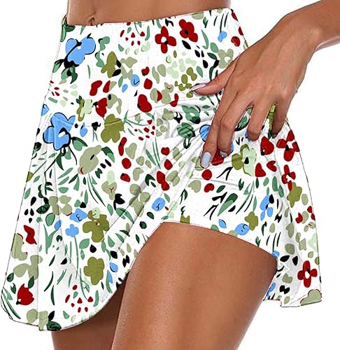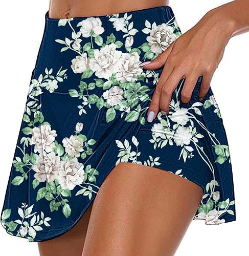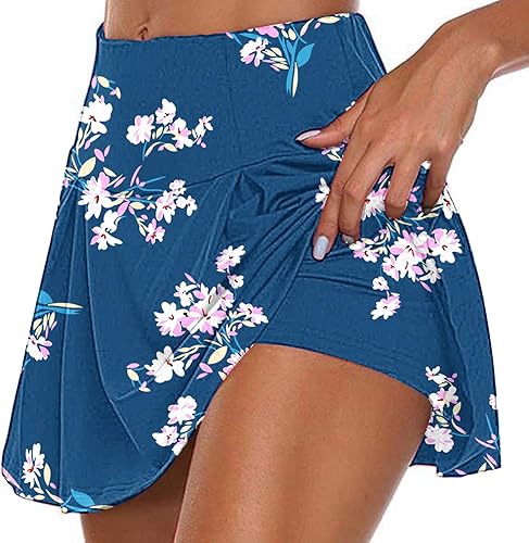Rock mit Hose Drunter Tennisrock Damen Sports Hohe Taille Golfrock Sportrock Sommer Röcke für Wanderrock Outdoor Hosenrock Lässig Sport Minirock Workout Rock Tennisröcke Laufen Laufröcke
