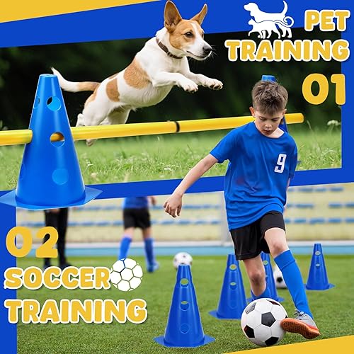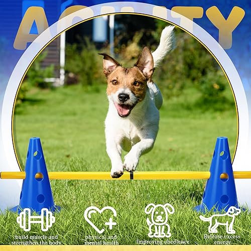 BHHTBB Agility Set Hunde Hürden Steckhürdenset Kinder, Hindernisse für Kinder Hunde Parcour zum Springen, Cavaletti Hund, 8 Kegel 23cm Höhe + 8 Stangen 80cm lang, für Trainingsübungen