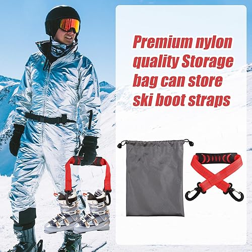 lasuroa 2stk Skischuh-Tragegurte mit Aufbewahrungstasche, Tragbare Ski-Tragegurte Rucksackgurte Ski-Schulterschlinge Skitasche Schultergurt Skate-Leine Rollschuh-Leine Ski-Zubehör
