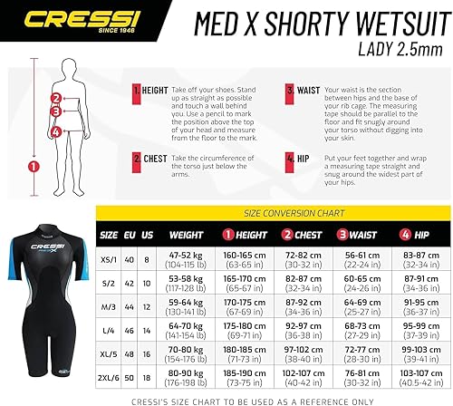 CRESSI Women's Med X Lady Shorty Wetsuit 2.5mm Black/Light Blue/Grey 2XL/6 Kurzer Neoprenanzug für Damen aus 2,5 mm Hochelastischem, Schwarz/Hellblau/Grau, XXL
