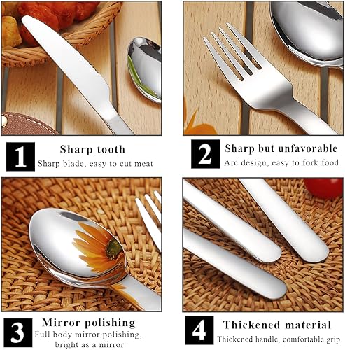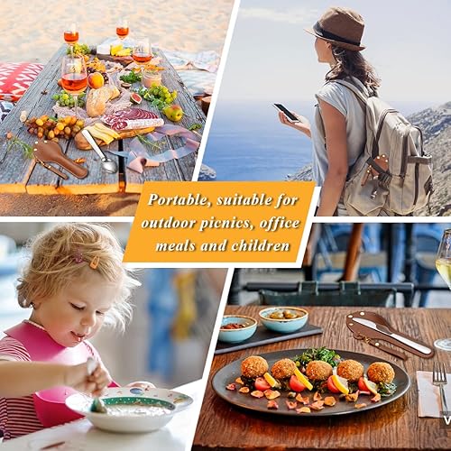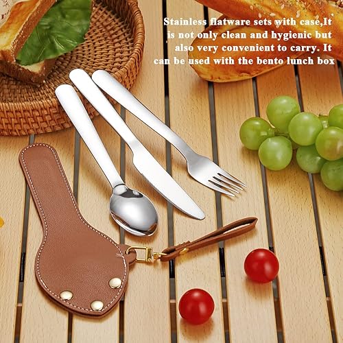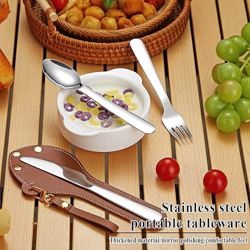 Berglander tragbares Camping Besteck Set 3-teiliges mit Lederbeutel leicht in der Tasche zu tragen, Edelstahlmesser, Löffel und Gabel Set perfekt für Schule, Arbeit, Bauernhof, Picknick, Reisen