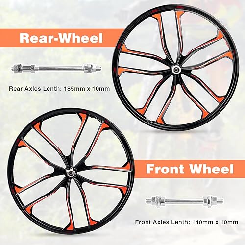 MEGHNA Fahrrad-Radsatz, 10 Speichen, leichtes Aluminium, 61/26 Zoll, integriertes Rad, kompatibel mit 6 Schrauben, Scheibenbremse, 7-12-Gang-Gewinde, Freilaufnabe für Mountainbike, Kinderfahrrad