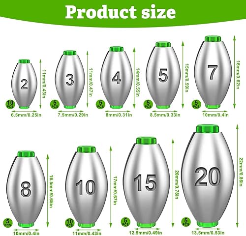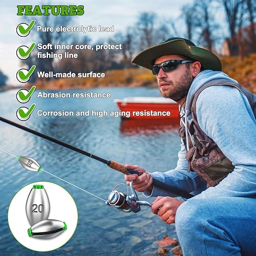 Editbar 55 Stück Laufblei Angeln, Blei Angeln Set, Sinker Angelblei Blei, Schrotblei Angeln Drop Shot Blei, Grundblei Angeln Set für Outdoor Sportarten Angeln, 2G/3G/4G/5G/7G/8G/10G/15G/20G