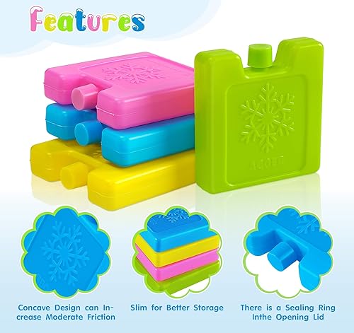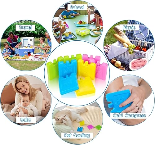 Agoer Kühlakkus für Kühlbox 4 Farben, 6/8/12 Stück Mini Kühlakku 7.5 x 7.5cm - Kleine Kühlpads Ice Packs Kühlpack für Brotdose Lunchbox Kühlbox