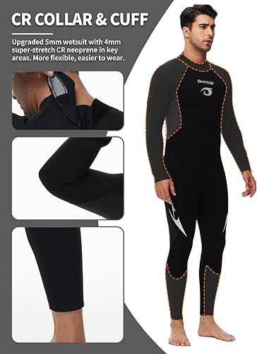 Owntop 5mm Neoprenanzüge für Männer Frauen - Rückenreißverschluss Neopren Tauchanzug, Erwachsene Ganzkörper-Nassanzüge, Thermischer Flexibler Tauchhaut Kaltwasser Tauchen Surfen