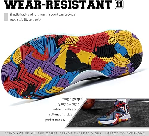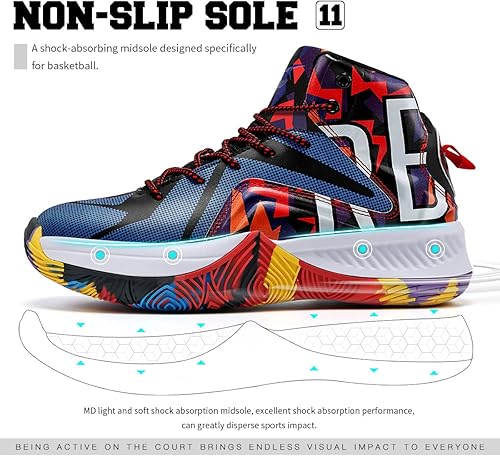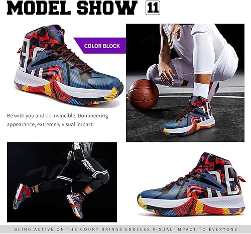 ASHION Basketballschuhe Jungen Turnschuhe Kinder Sneaker High Top Outdoor Sportschuhe Anti Skid Atmungsaktive(AB Mehrfarbig,40EU)