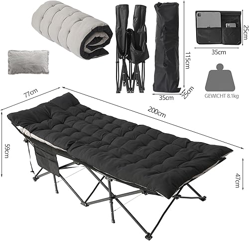 Flycoop Feldbett Klappbar mit Matratze und Kissen Campingbett 71cm/81cm Klappbett Camping Bett 204 kg Reisebett Erwachsene Gästebett für Garten Innen Outdoor Camping