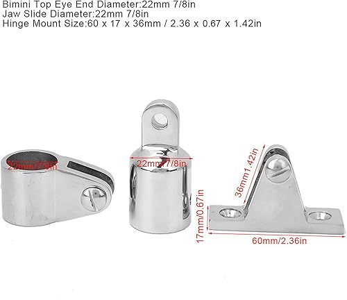 12 Stück 3-Bogen Bimini Top Scharnier Schienenmontage Boot Bimini Top Abdeckkappe Edelstahl Bootsbeschläge Hardware Scharnier Montage Kiefer Schieber Bimini Top Eye End Kit