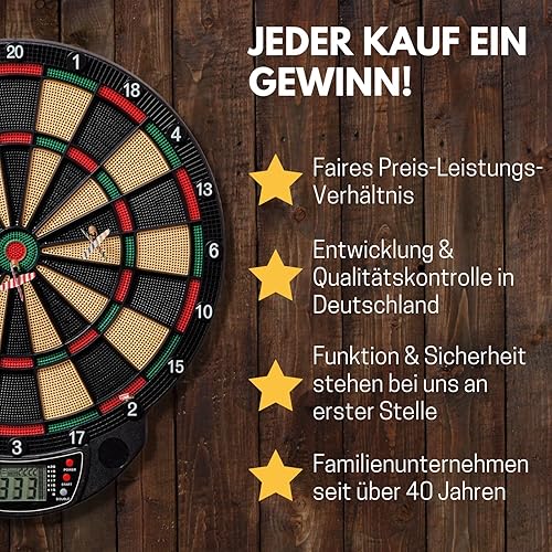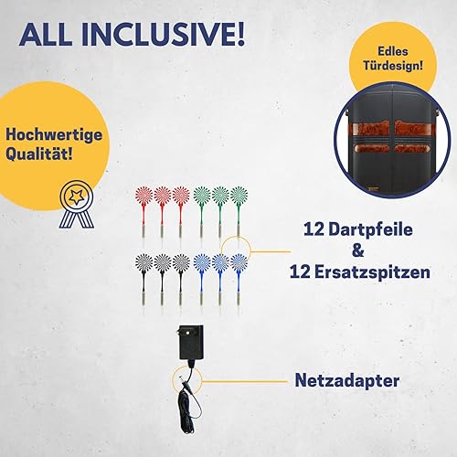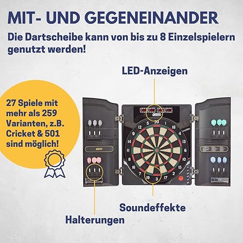 Best Sporting Dartscheibe elektronisch Oxford 2.0 I elektronische Dartscheibe mit LED-Anzeigen I E-Dartscheibe mit 12 Dartpfeilen & Ersatzspitzen I Dartboard Kabinett mit Walnuss-Optik