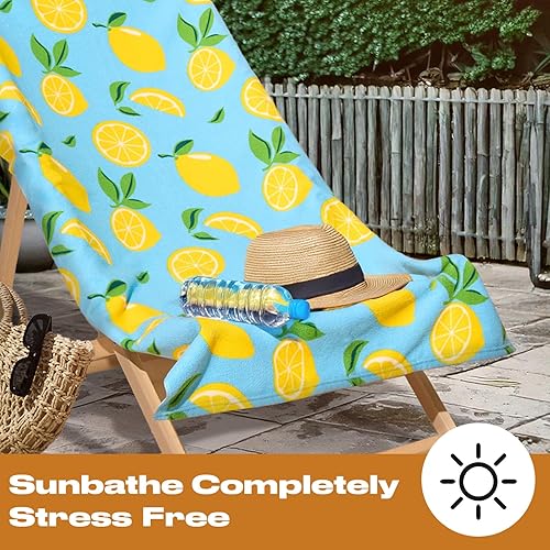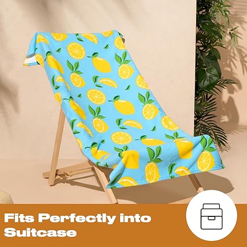 DREAMSCENE Mikrofaser-Strandtuch, Blaue Zitrone, Badehandtücher für Erwachsene, superschnell trocknendes Handtuch, Pool, Fitnessstudio, Sommer, Strand, Urlaub, 71 cm x 152 cm