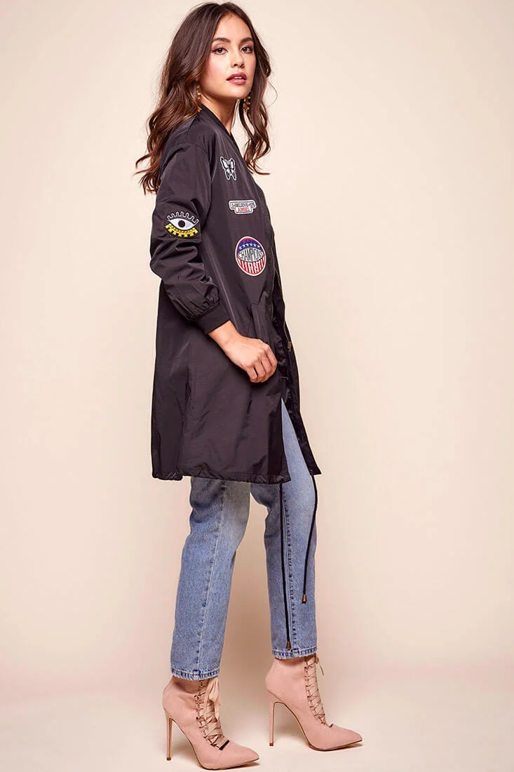 Harlan Long Patchwork Bomber Jacket Black