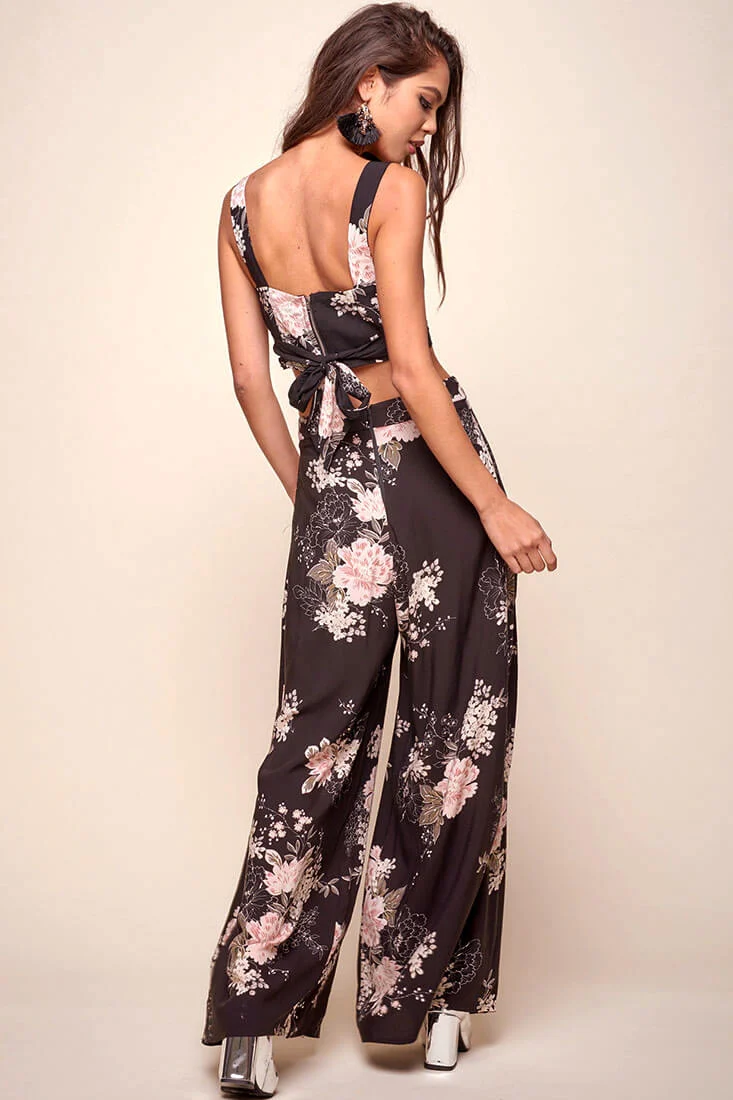 Cicely Floral Crop Top Black