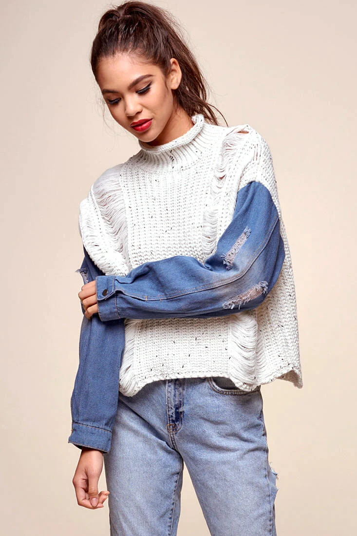 Dawn Denim Sleeved Knit Sweater Marble Blue