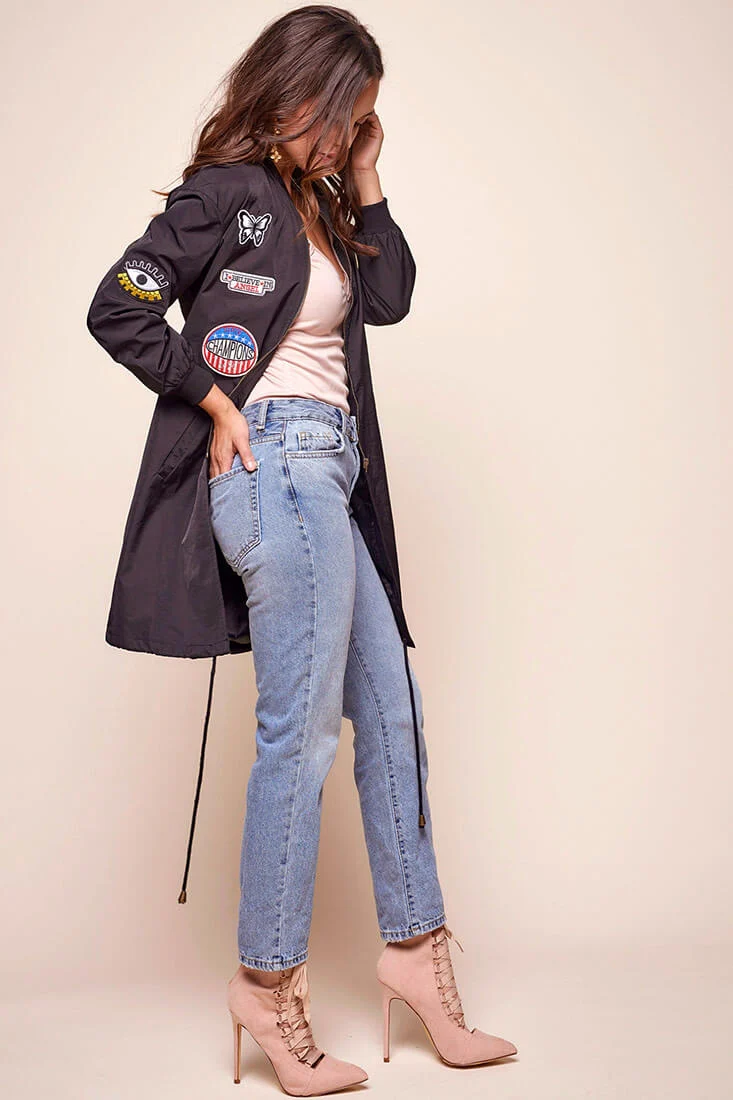 Robyn Embroidered Bomber Jacket Black