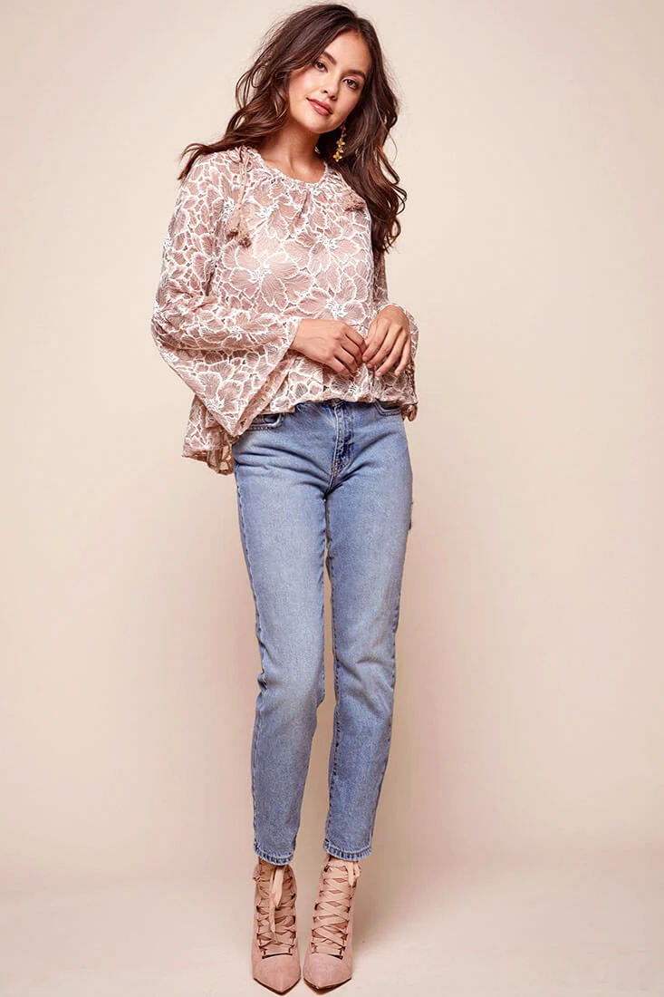 Neiah Sheer Lace Bell Sleeved Top Mocha