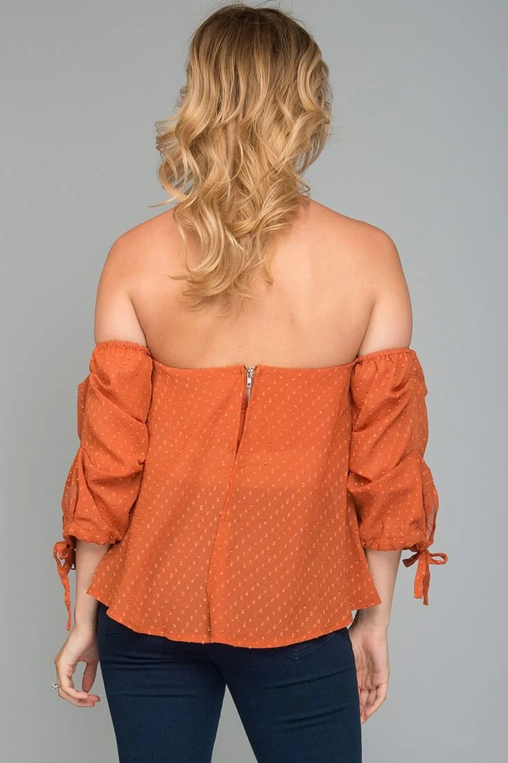 Lana Heart Shaped Off the Shoulder Top Rust