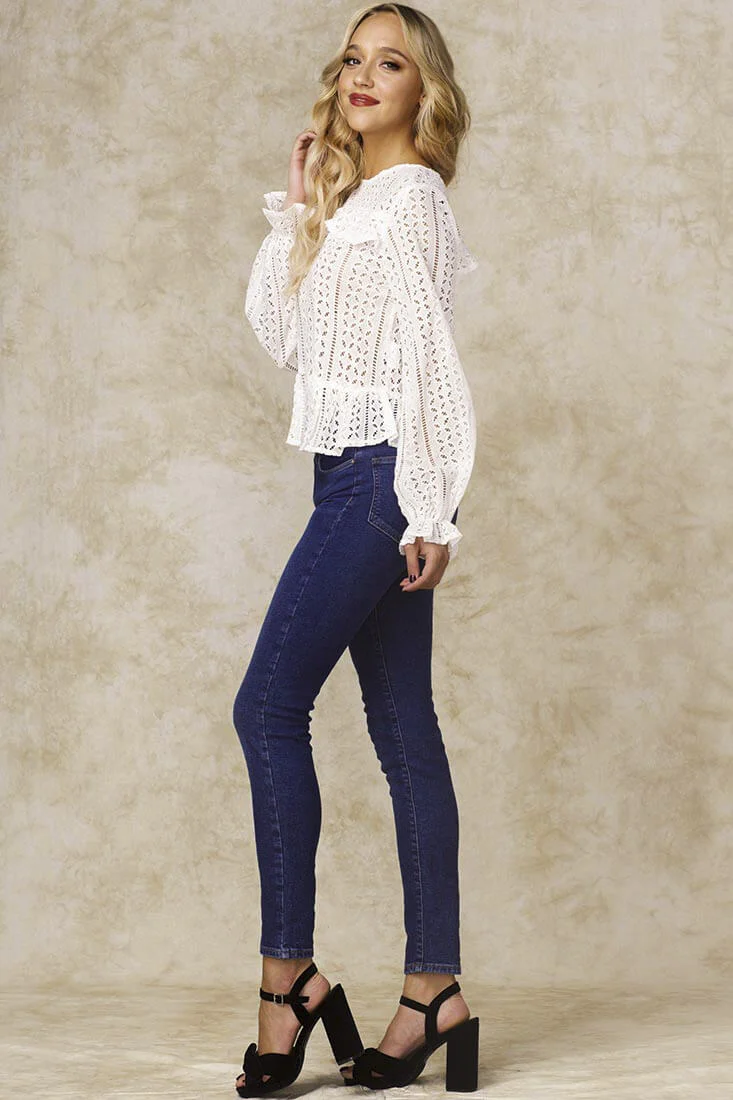 Gwendoline Mesh Long Sleeved Ruffled Shirt White