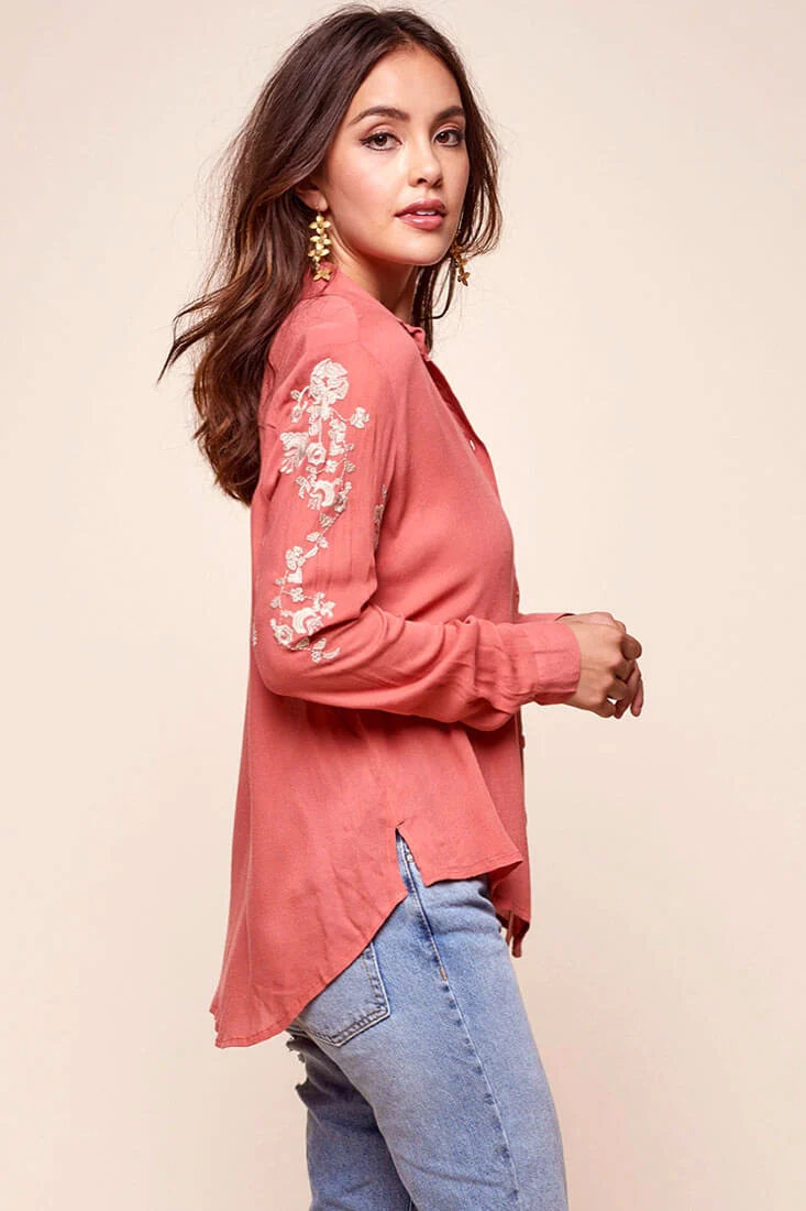 Issa Floral Sleeved Button Up Top Rust