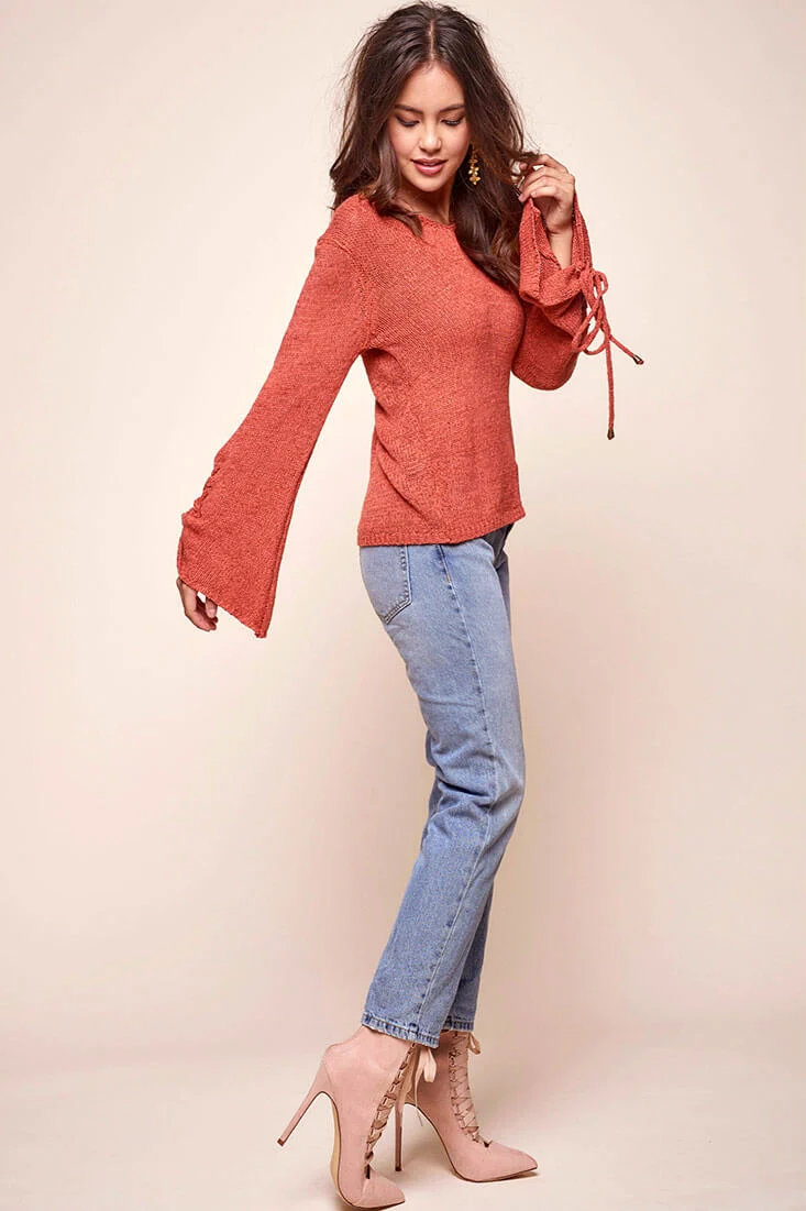Cairo Knitted Long Tie Sleeved Top Rust