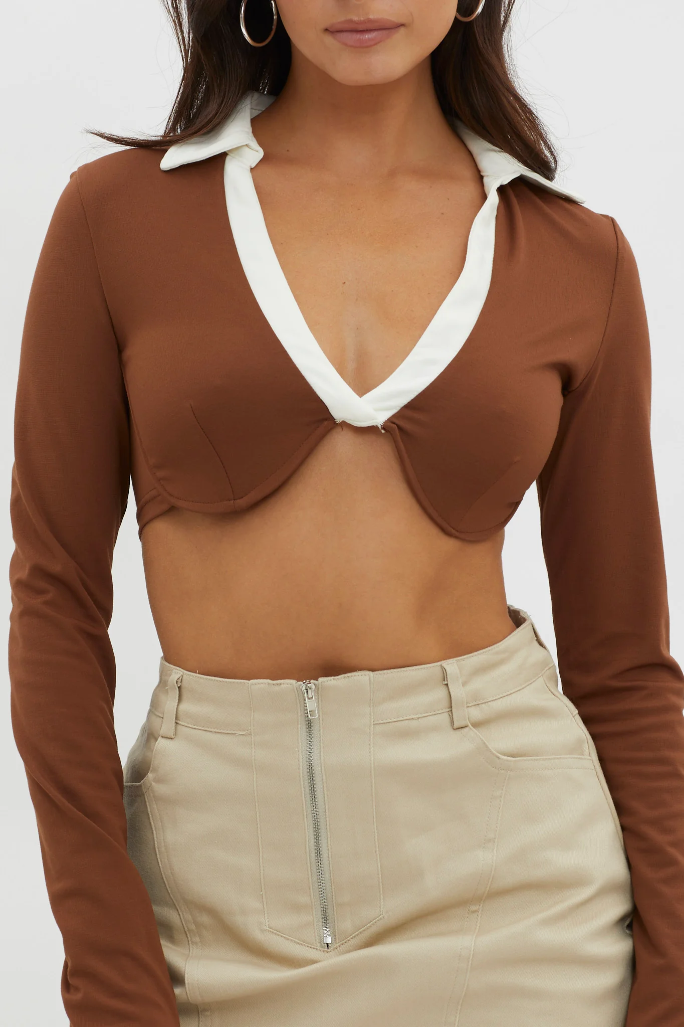 Pippi Flared Cuff Knit Crop Top Cocoa