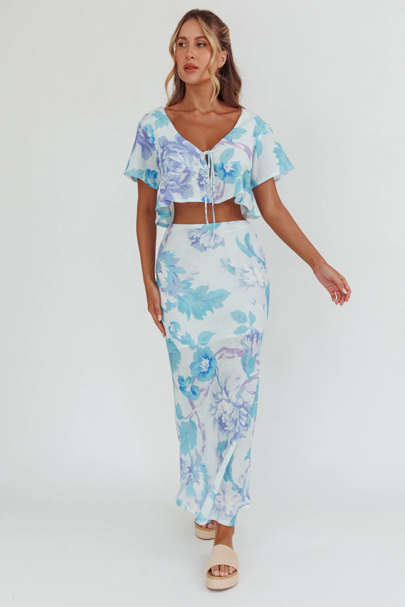 La Vie Tied Bust Crop Top Floral Blue