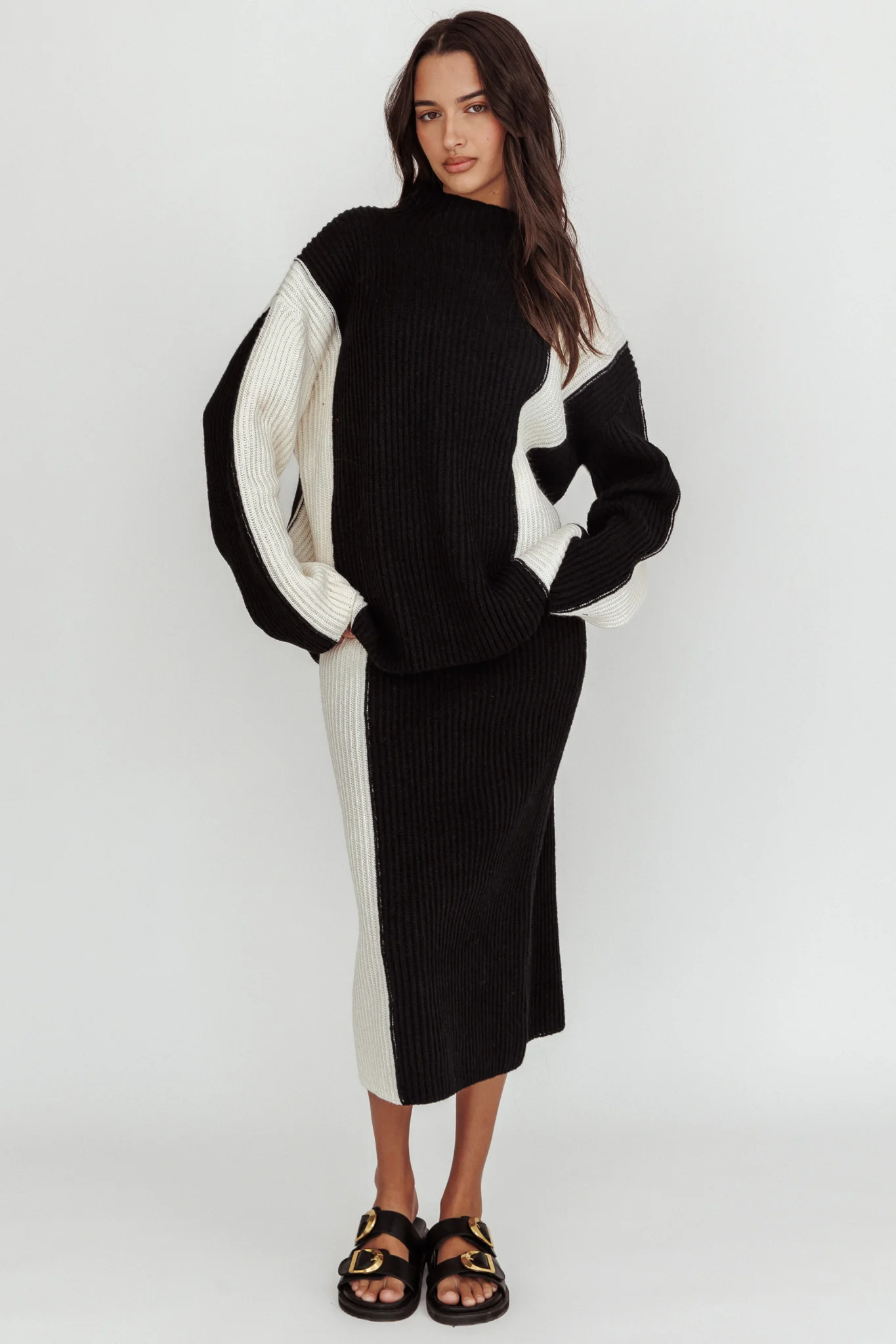 Eos Ribbed Mock Neck Knit Jumper Black Cream