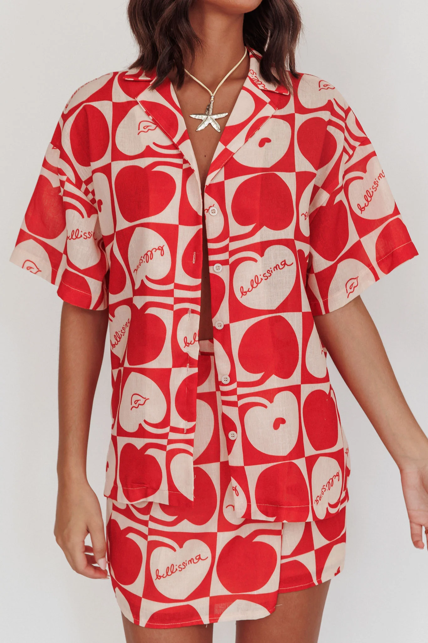 Ithaca Cherry Print Short Sleeve Shirt Red Beige
