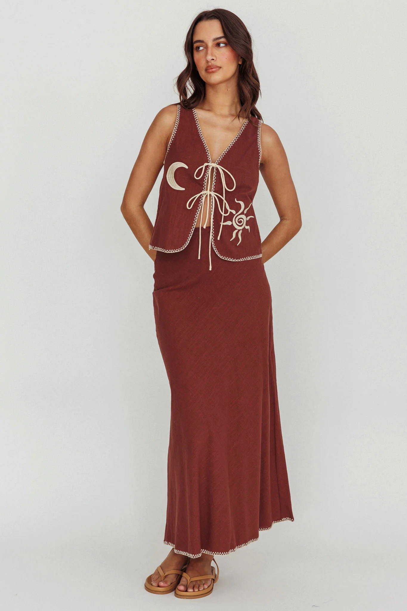 Dose Of Sunshine Blanket Stitch Vest Top Chocolate