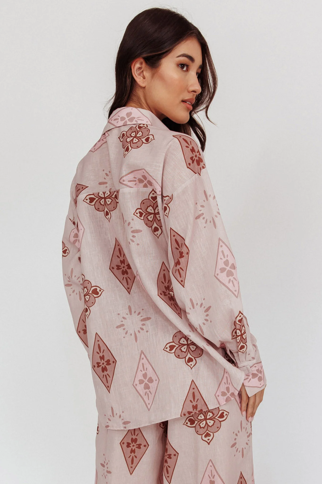 Alex Motif Collared Buttoned Shirt Mocha