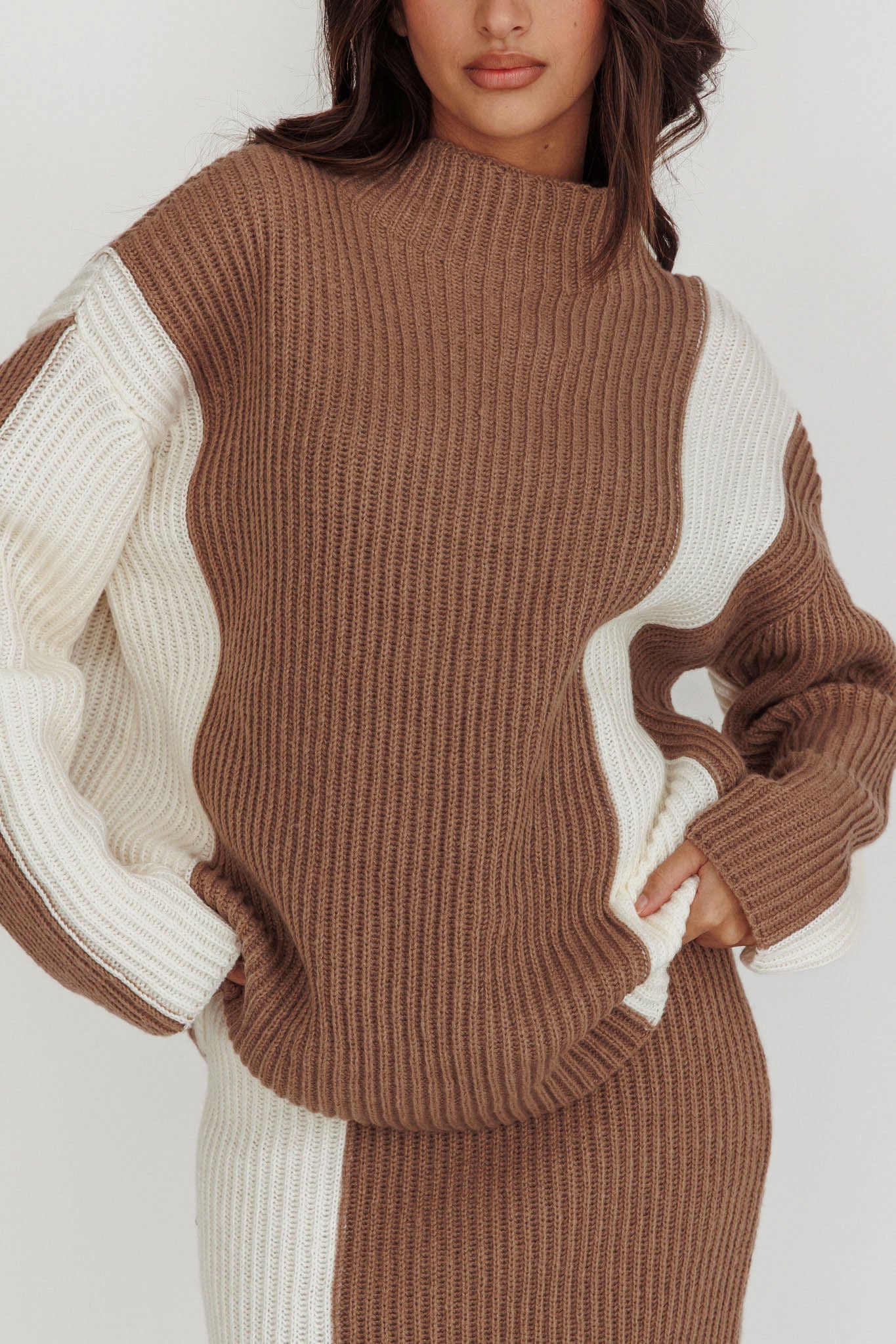 Eos Ribbed Mock Neck Knit Jumper Mocha Cream