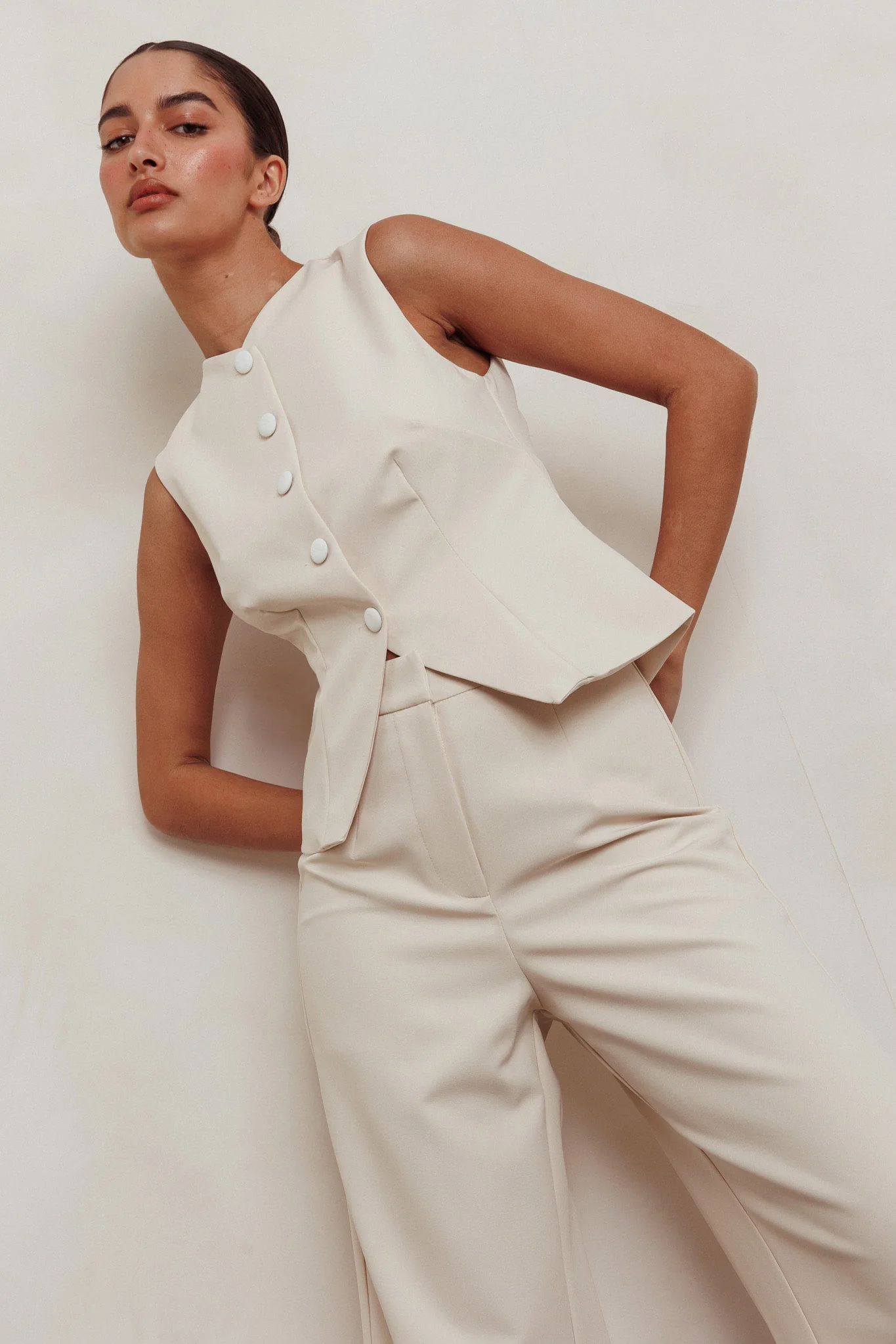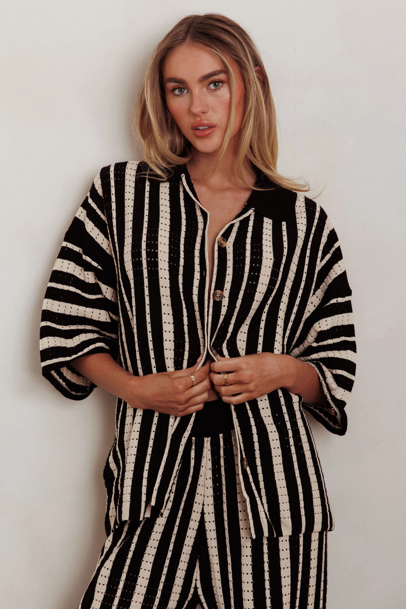 Zealous Boxy Cropped Striped Shirt Beige/Off White