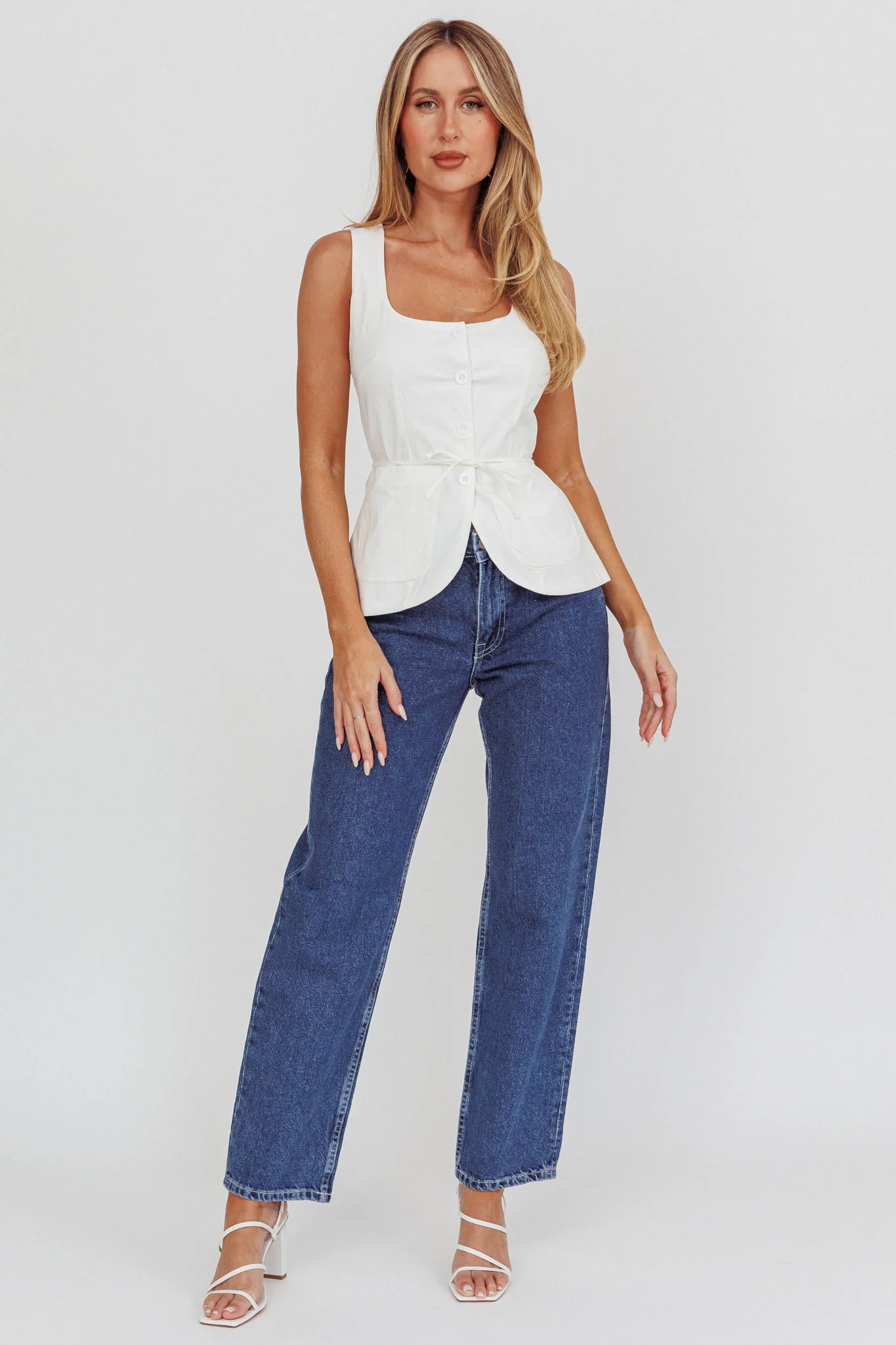 Notice Me Puff Sleeve Neck Bow Top Denim Blue