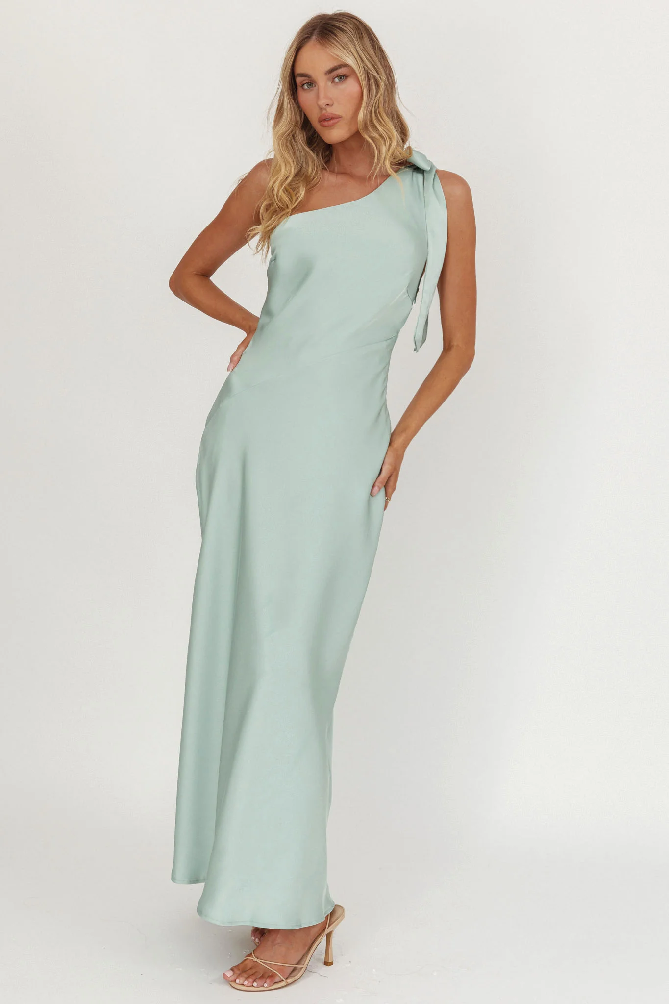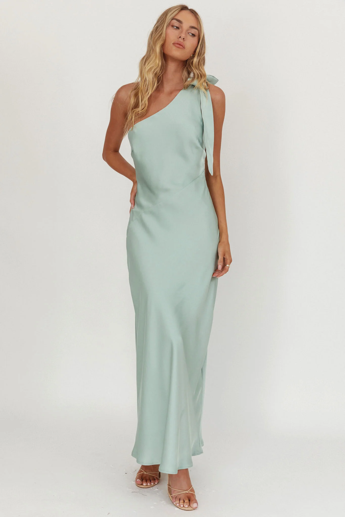 Robertah One-Shoulder Bow Maxi Dress Sage