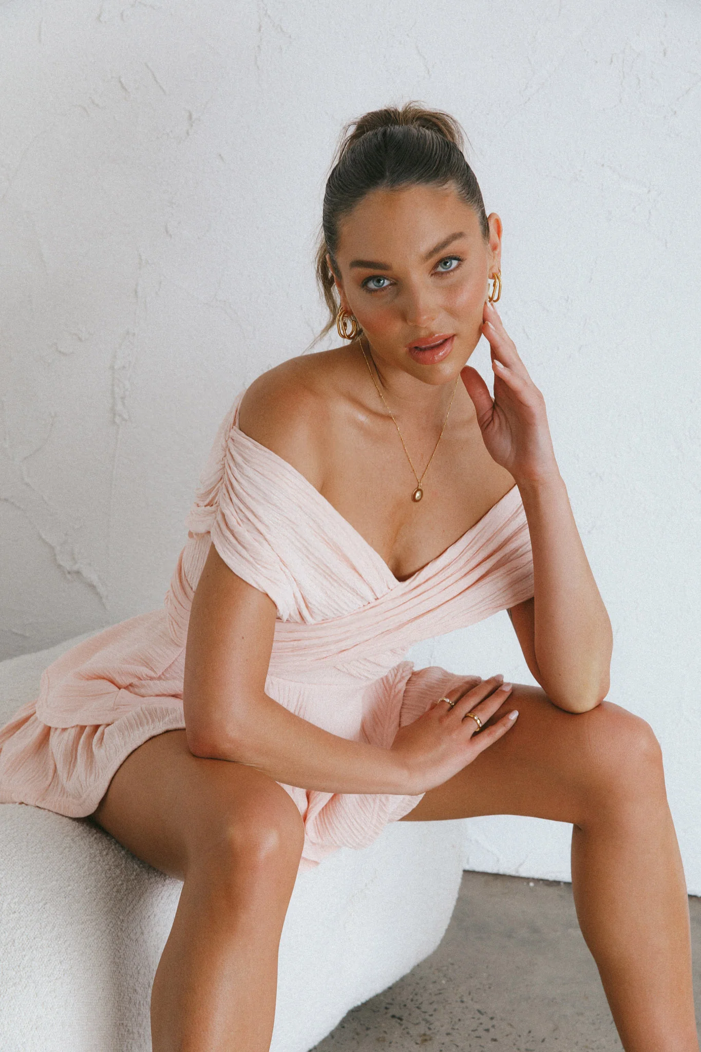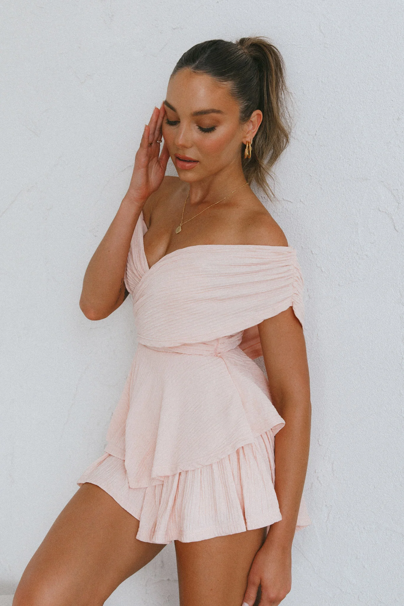 Glory Crossover Bust Layered Hem Romper Blush
