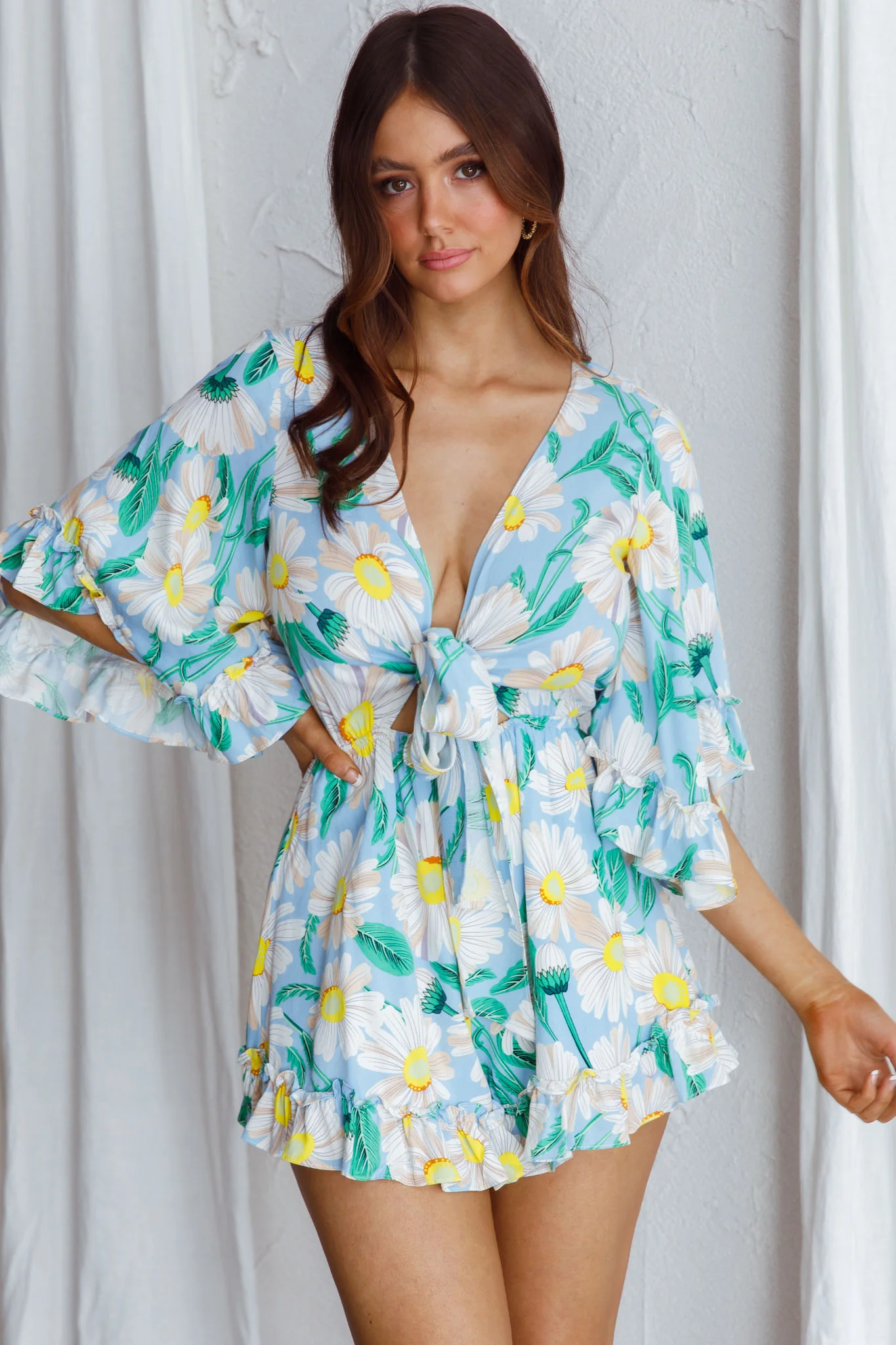 Athira Tied Bust Flared Sleeve Romper Daisy Blue