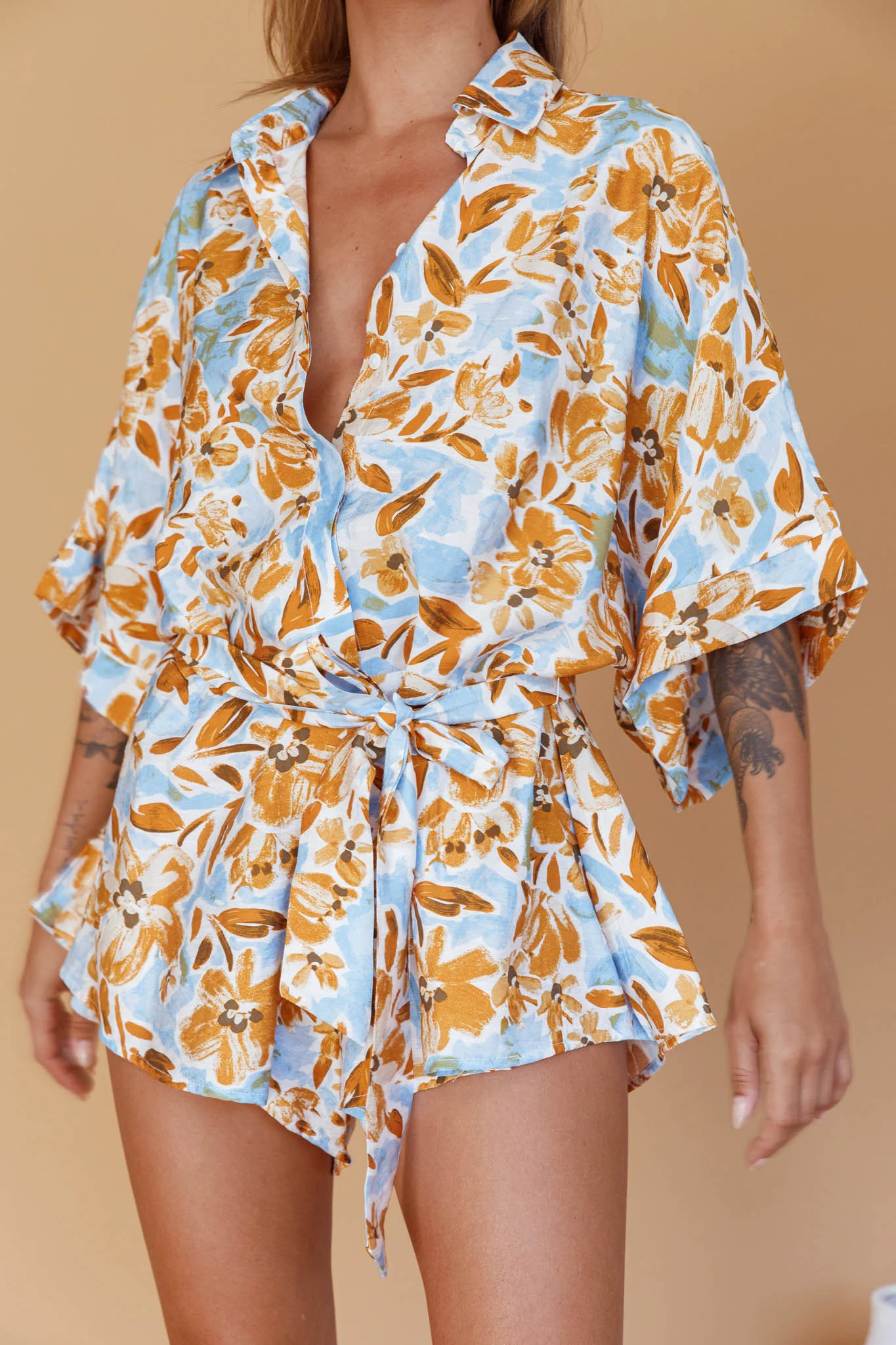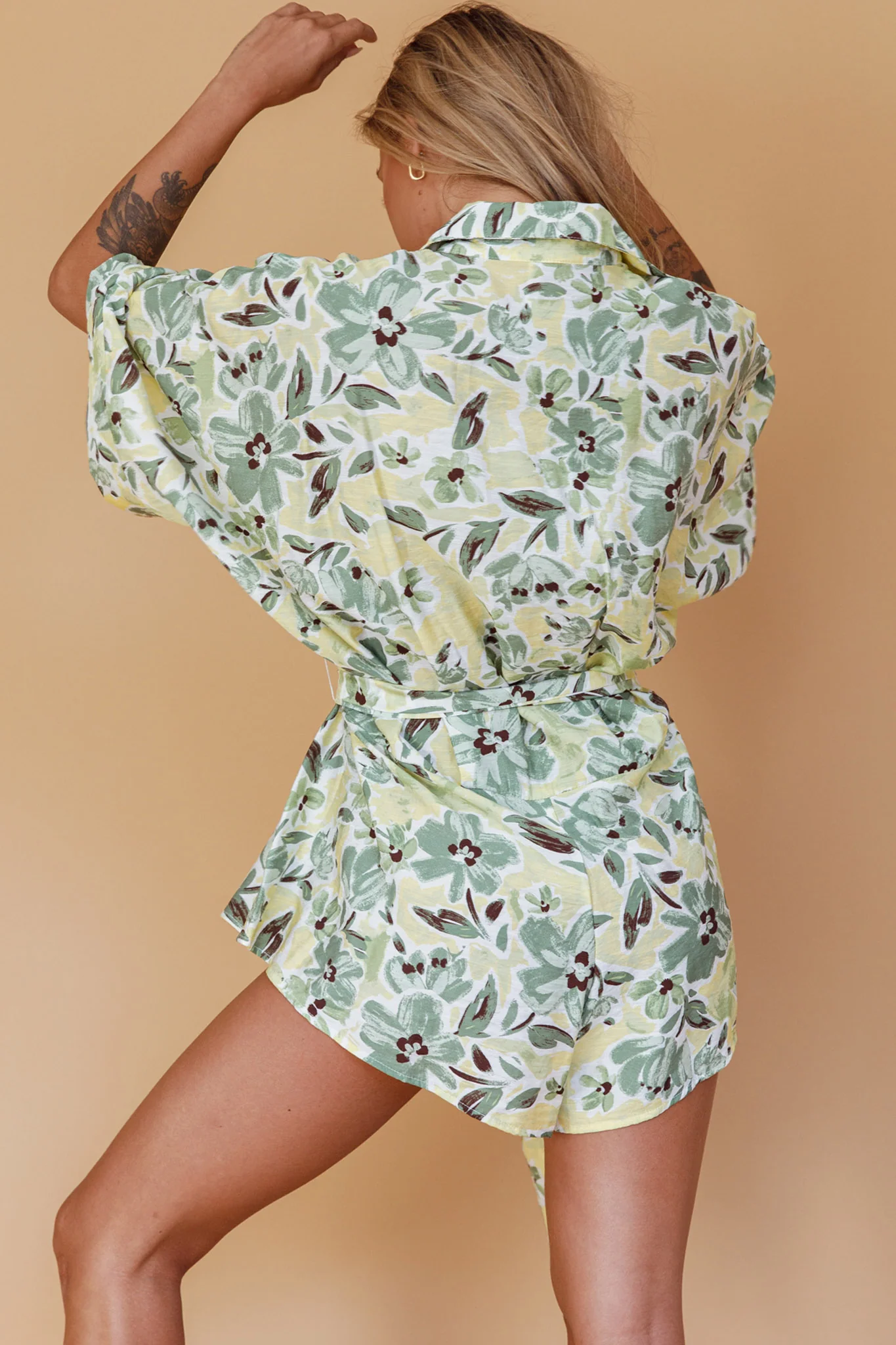 Sweet Revenge Shirred Neckline Bust Tie Romper Floral Mint