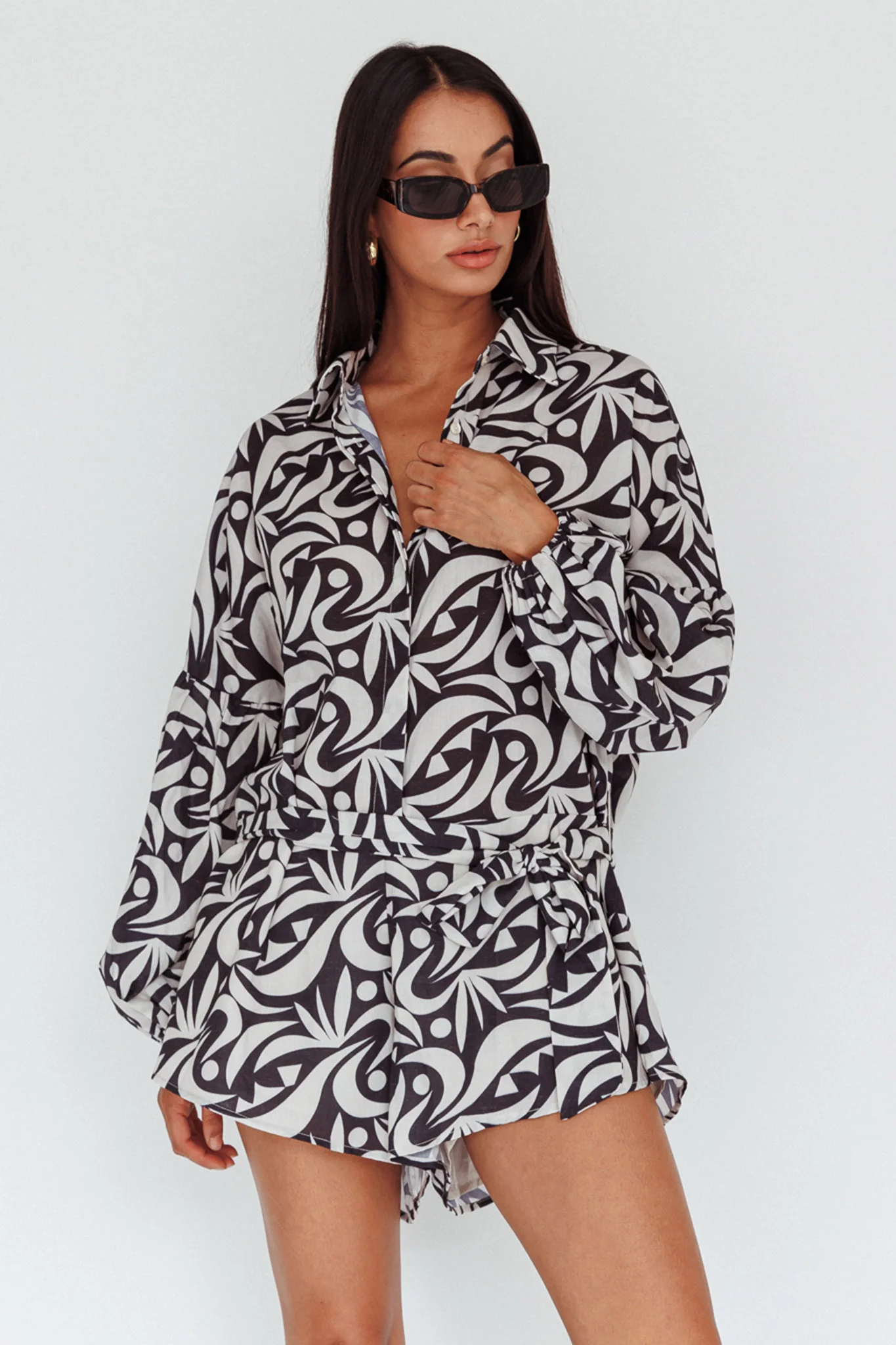 Daytona Beach Long Sleeve Shirt Romper Print Black