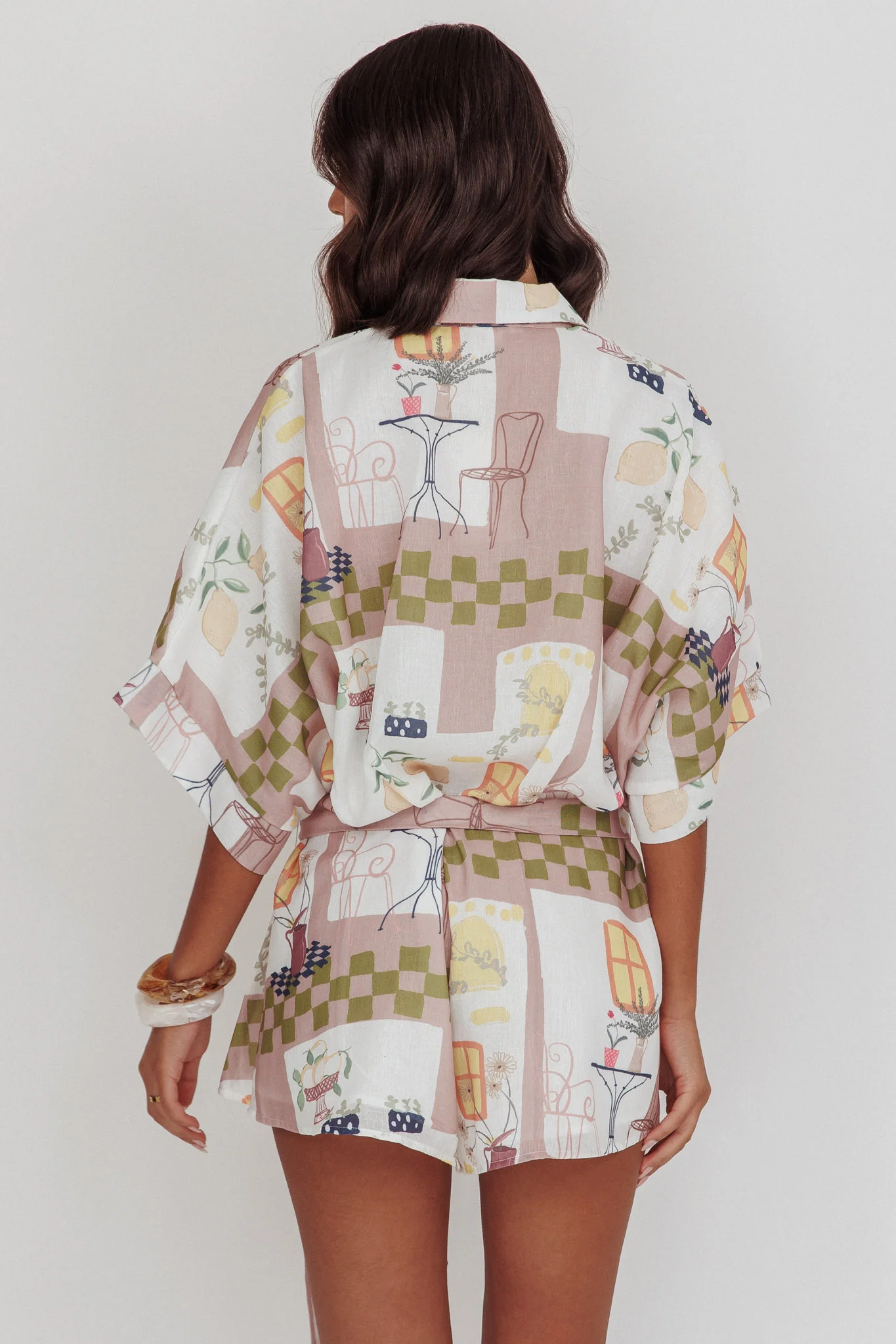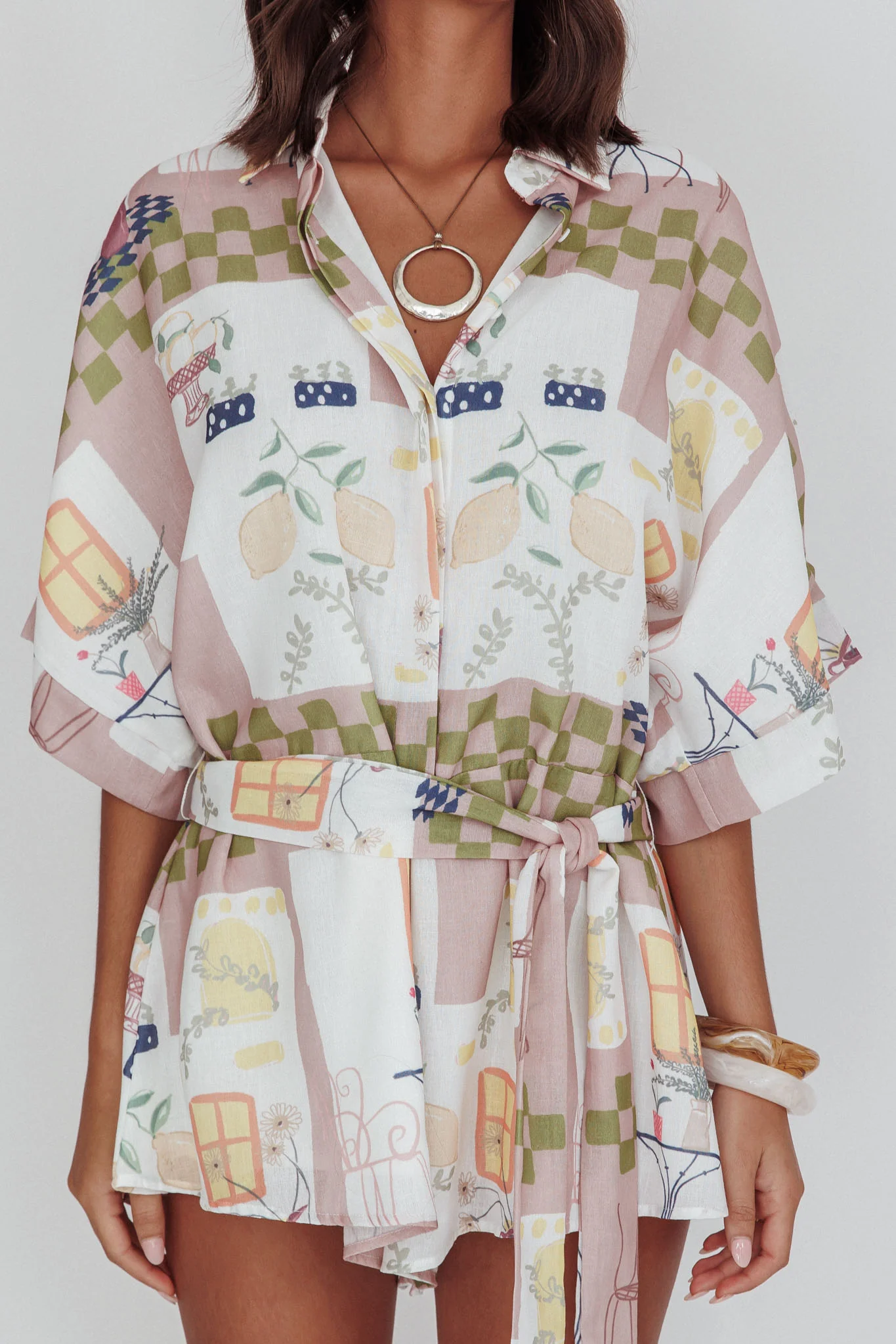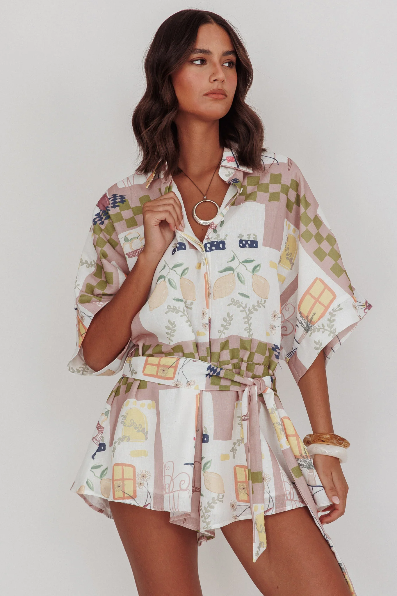 Paris Muse Gathered Bust Embroidered Romper Pink