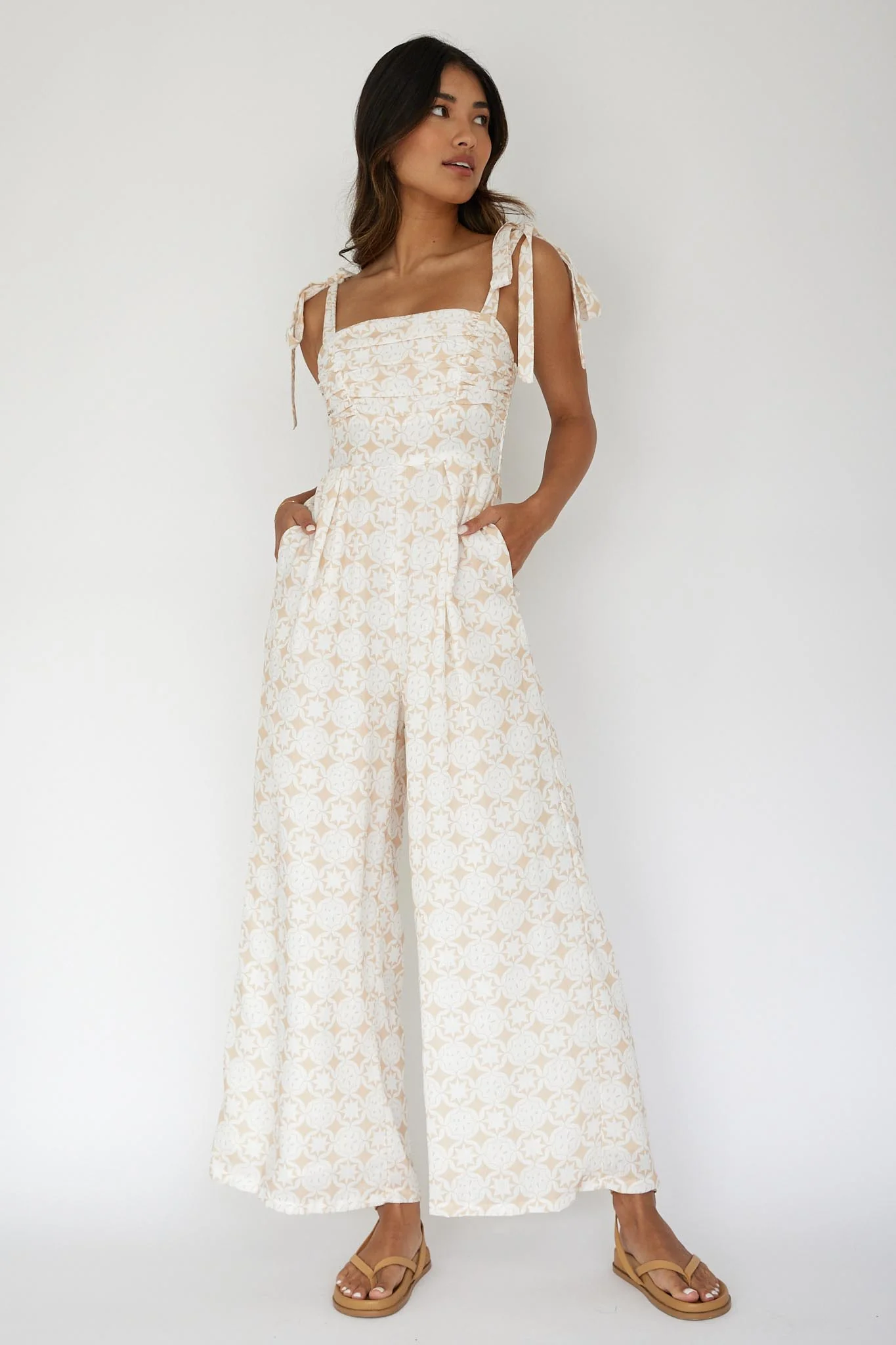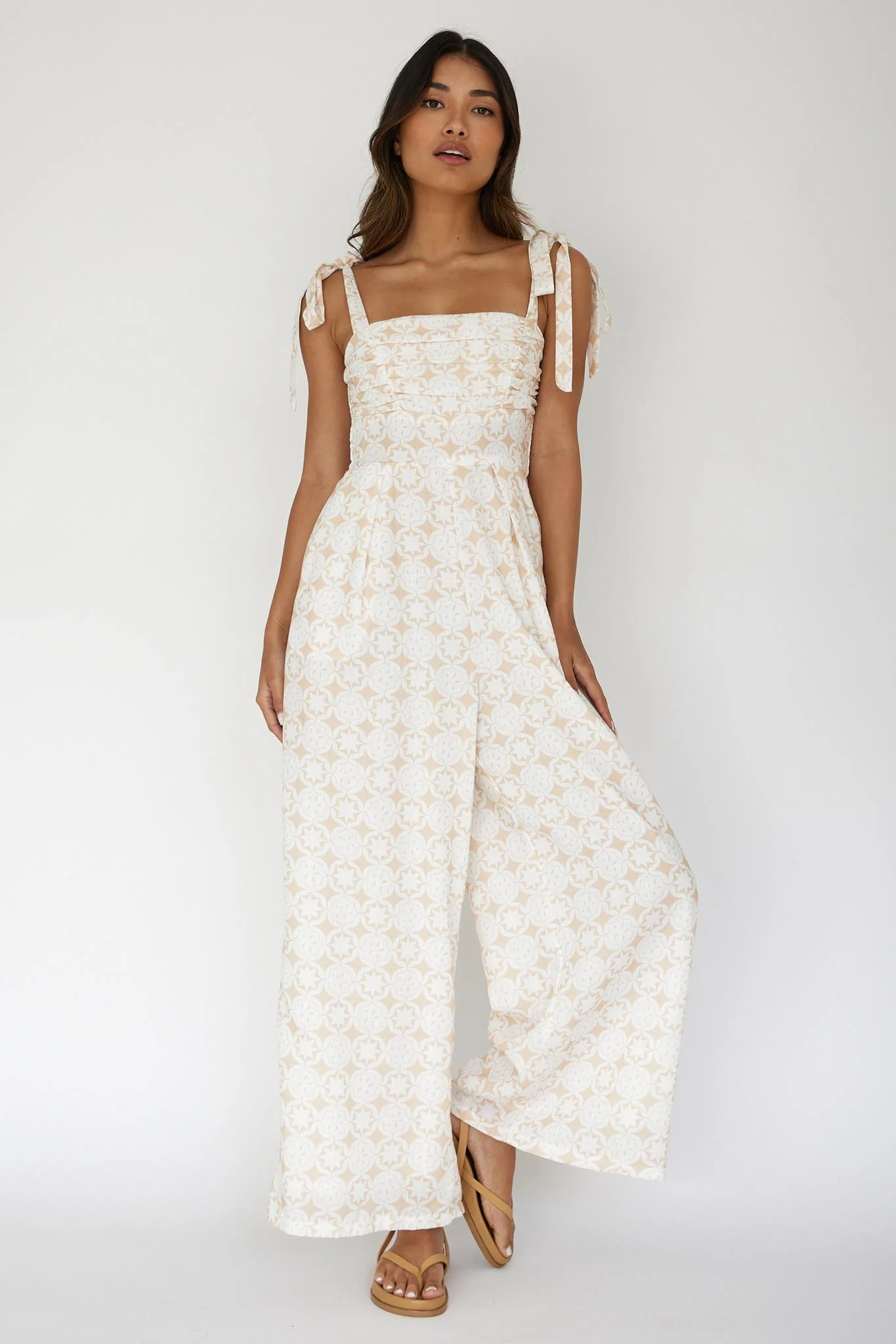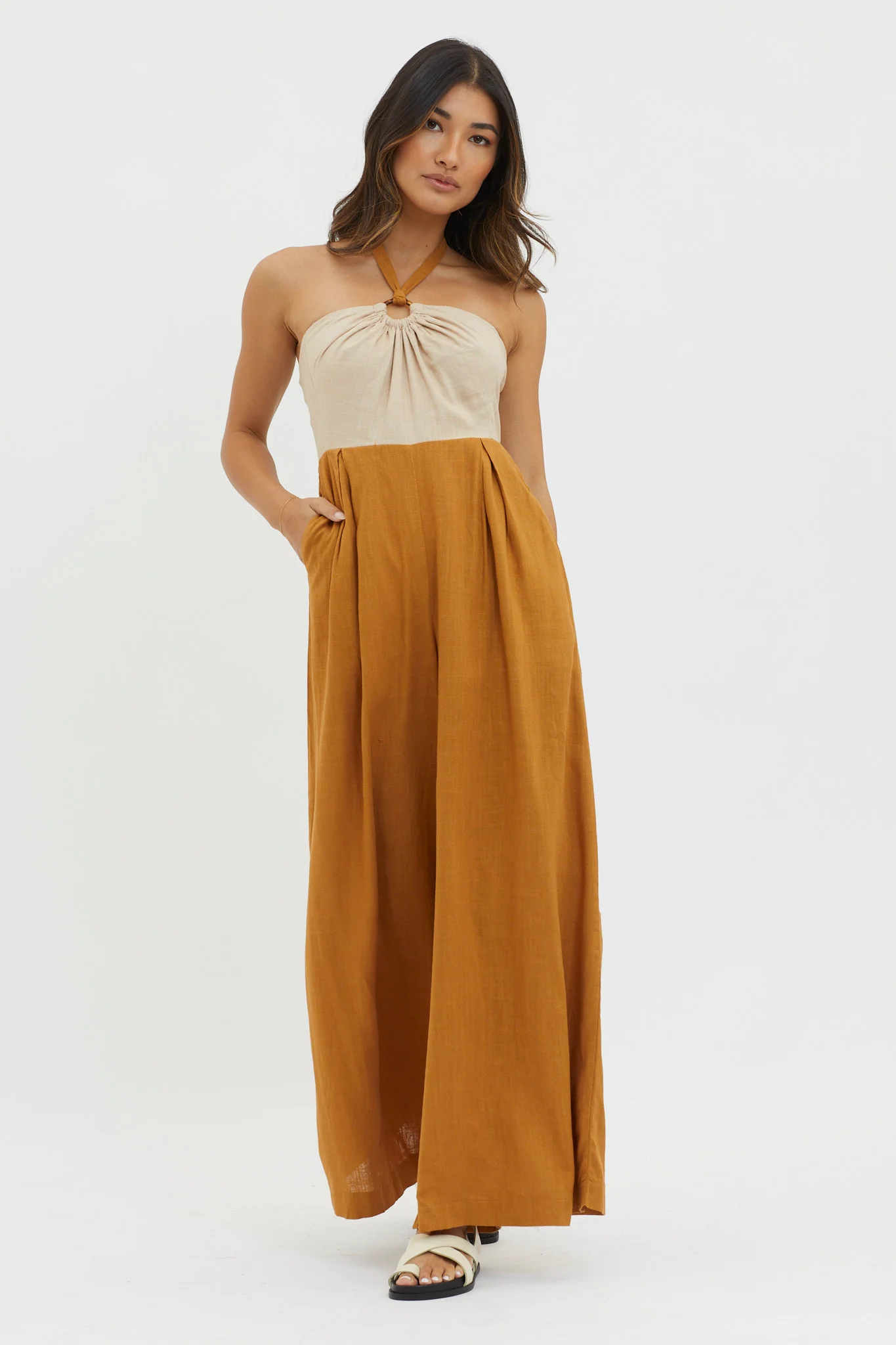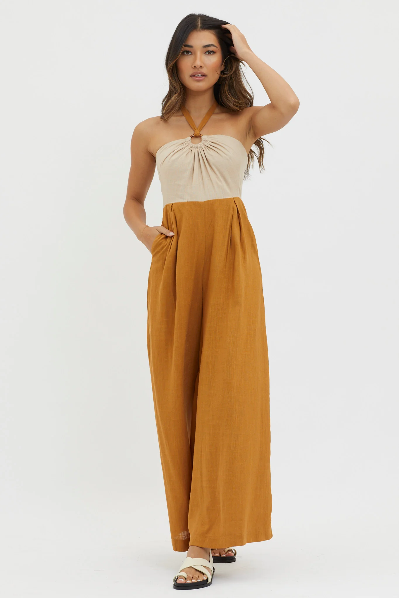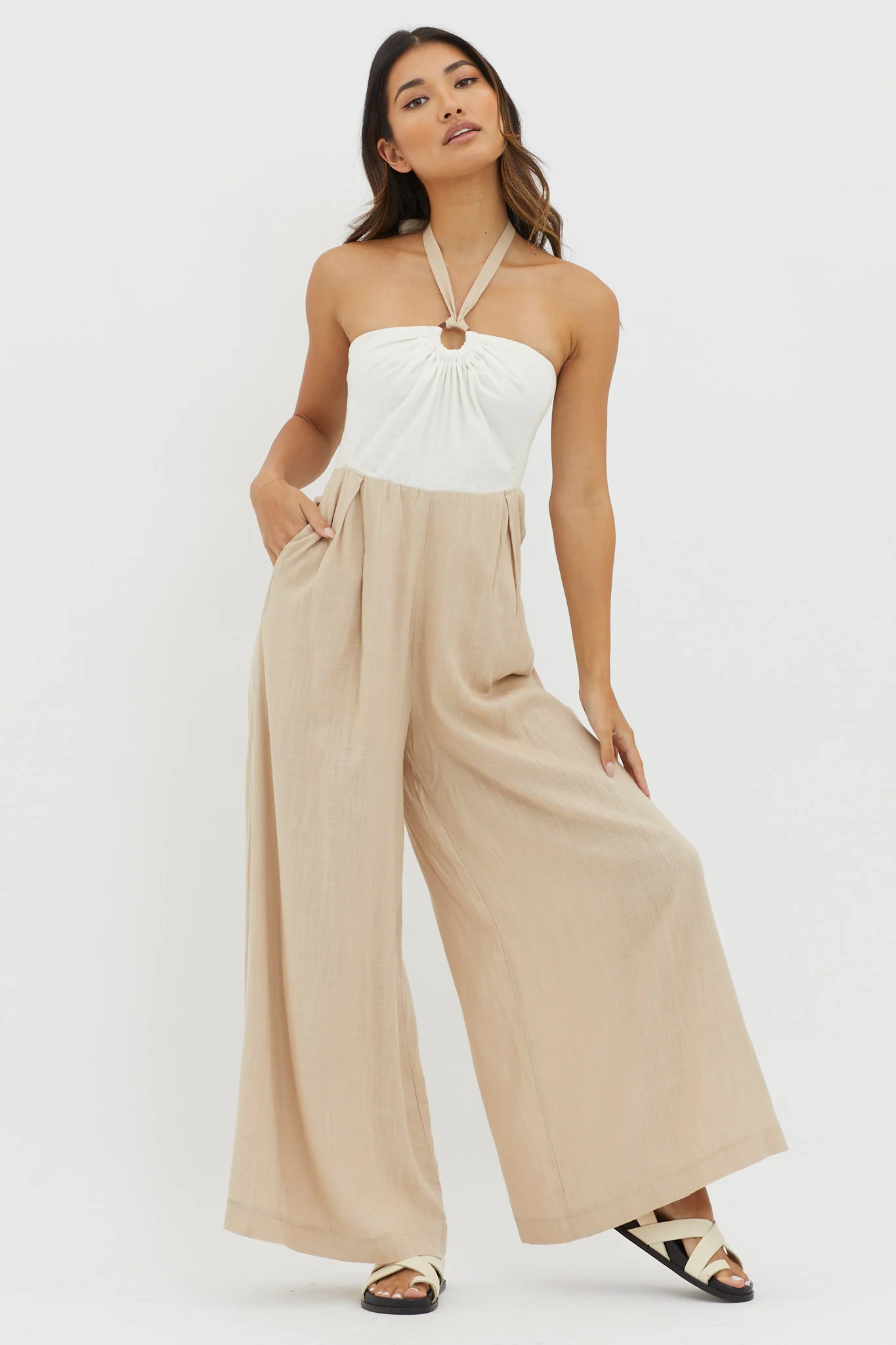 Maryn Wide Leg Halterneck Jumpsuit Beige