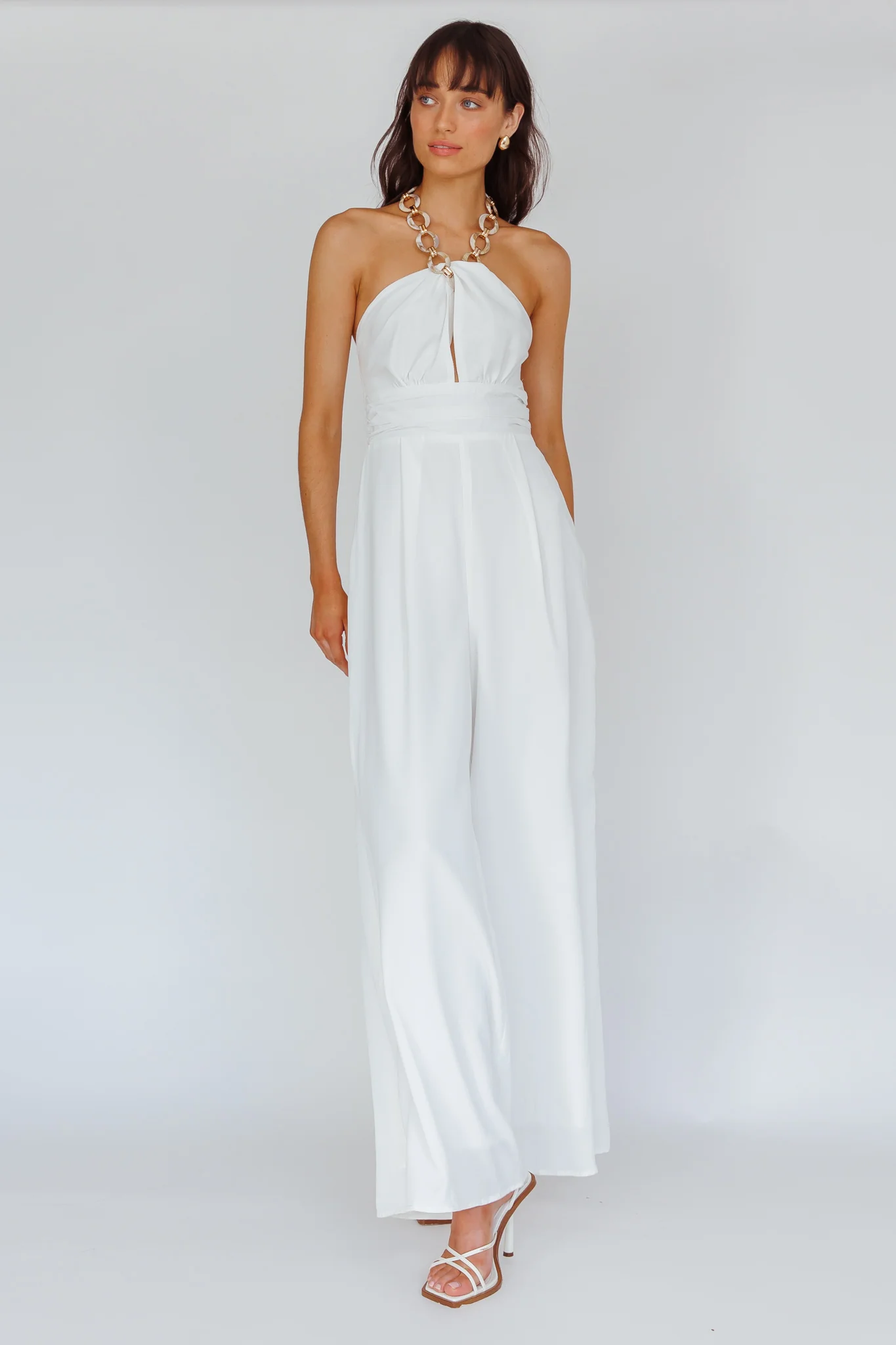 Tarlena Chiffon Neckline Jumpsuit Off-White