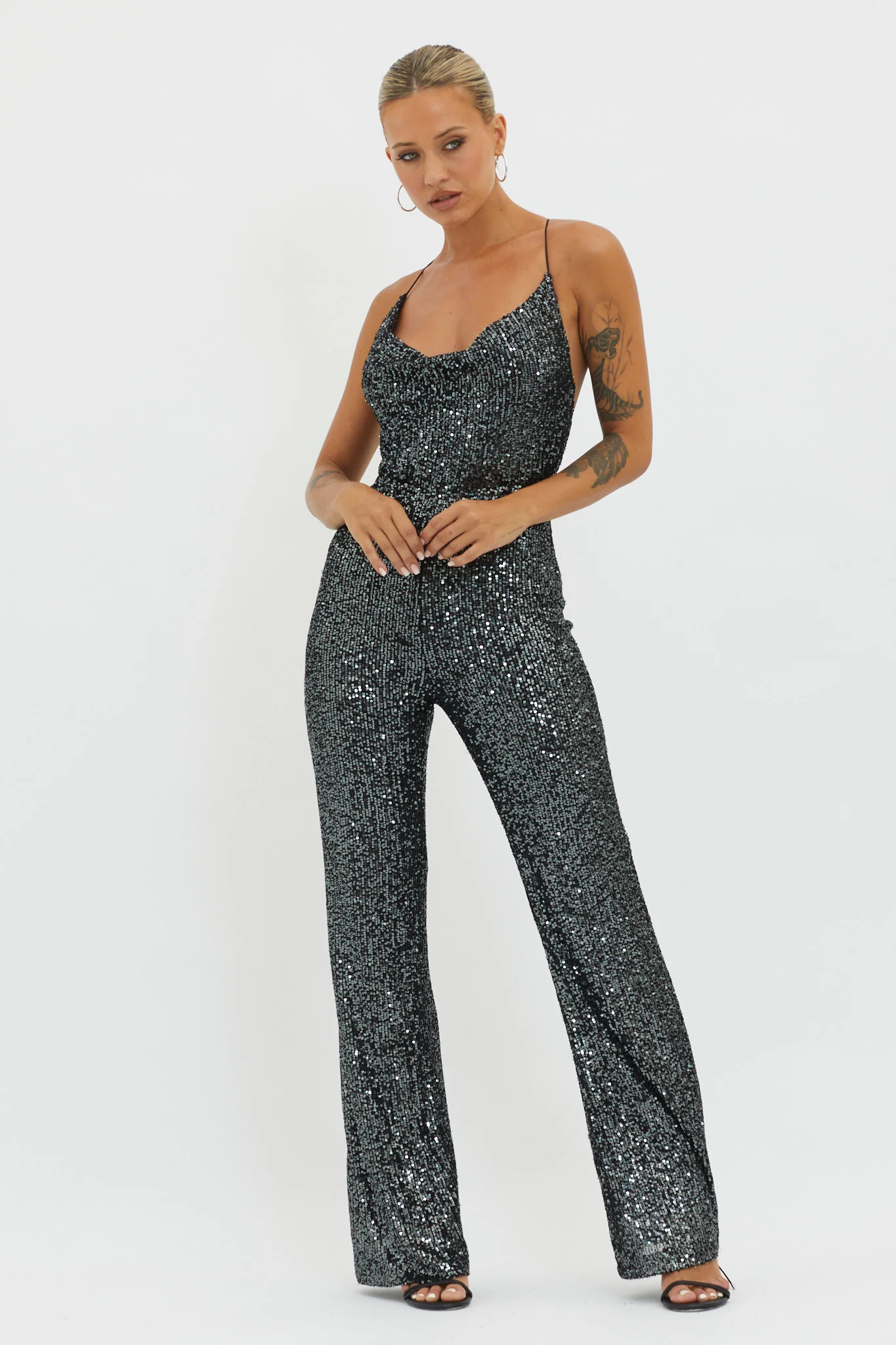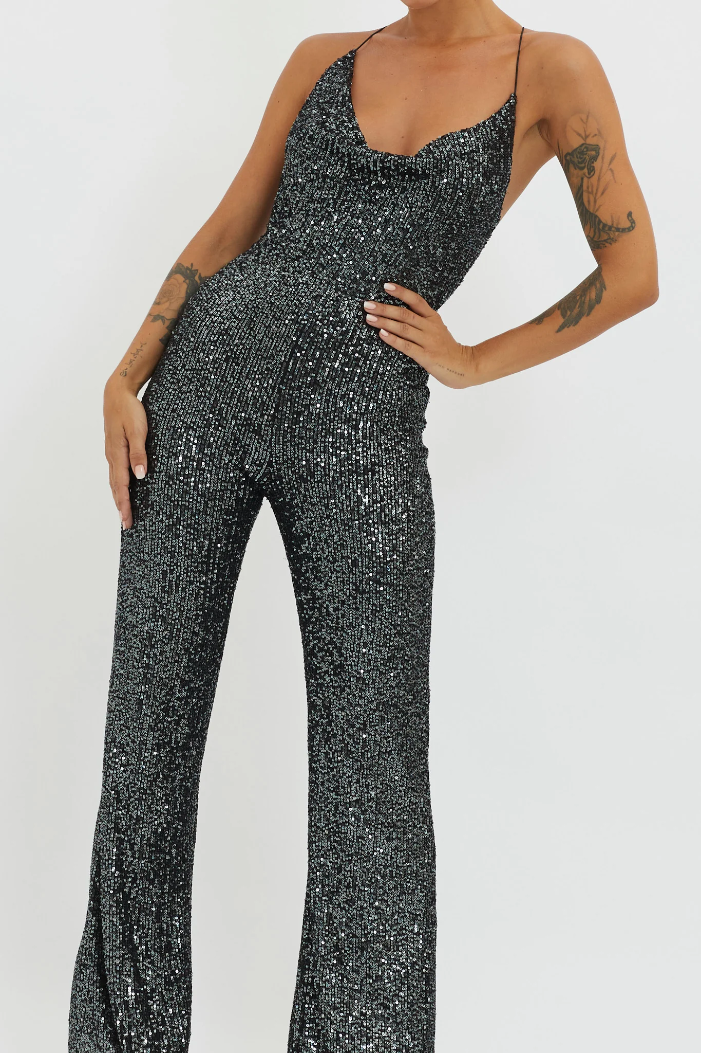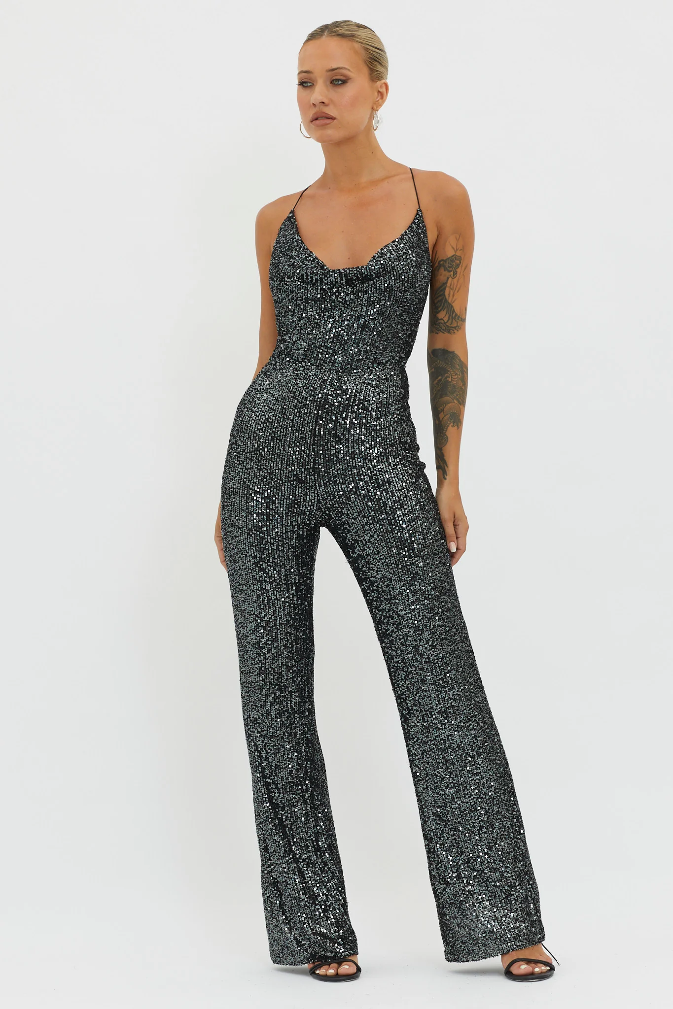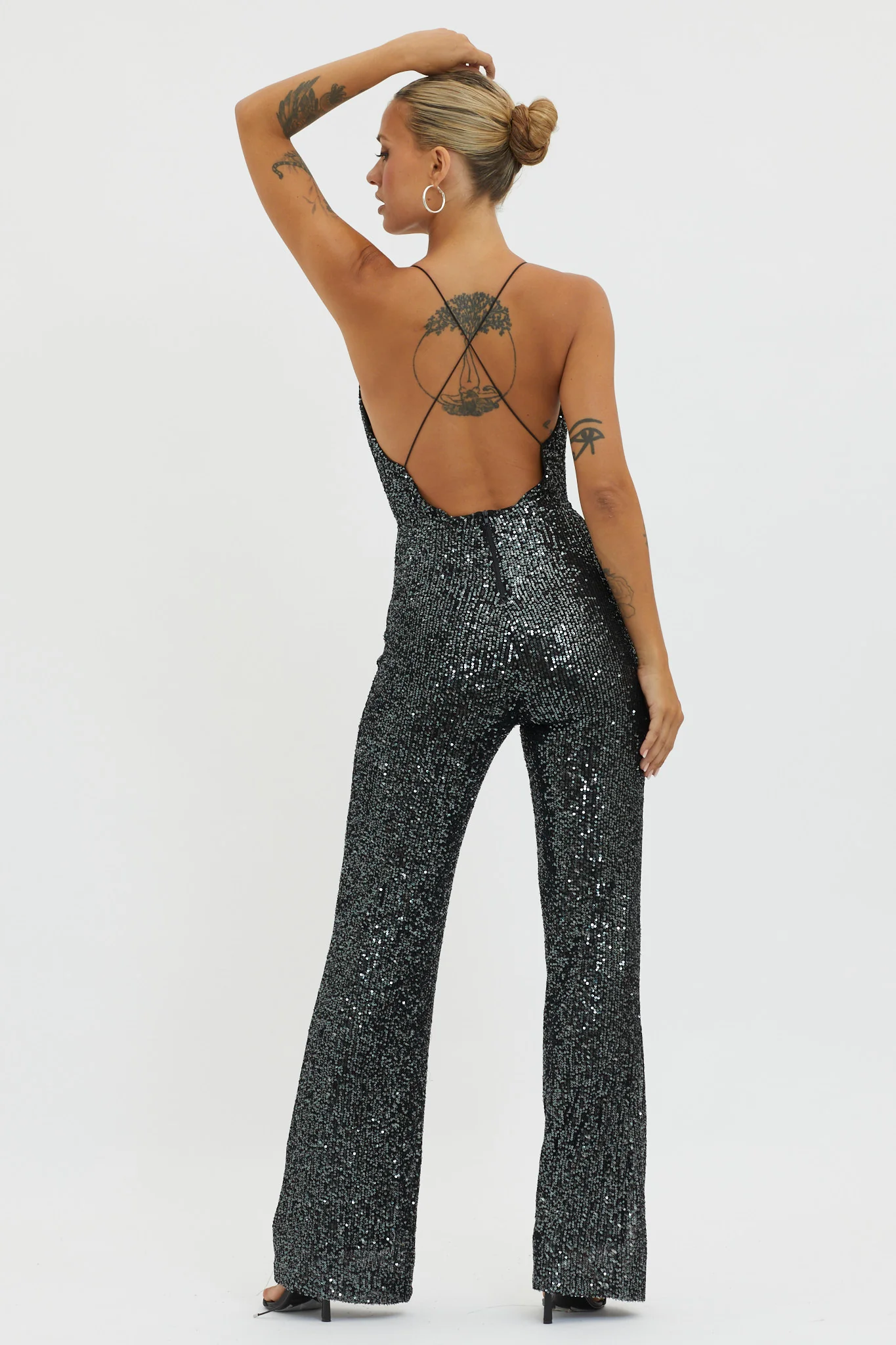Midnight Kiss Sequin Jumpsuit Gunmetal