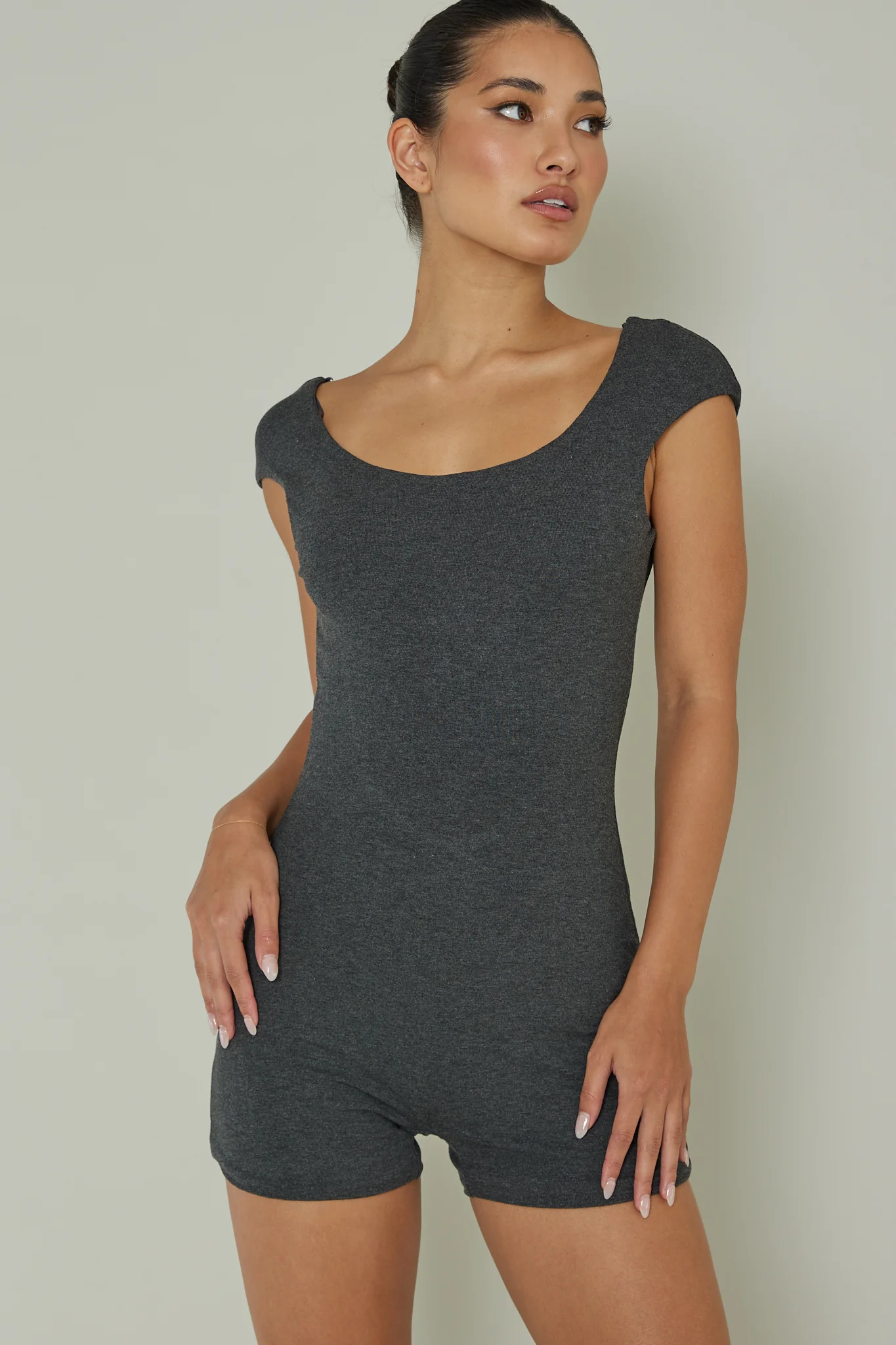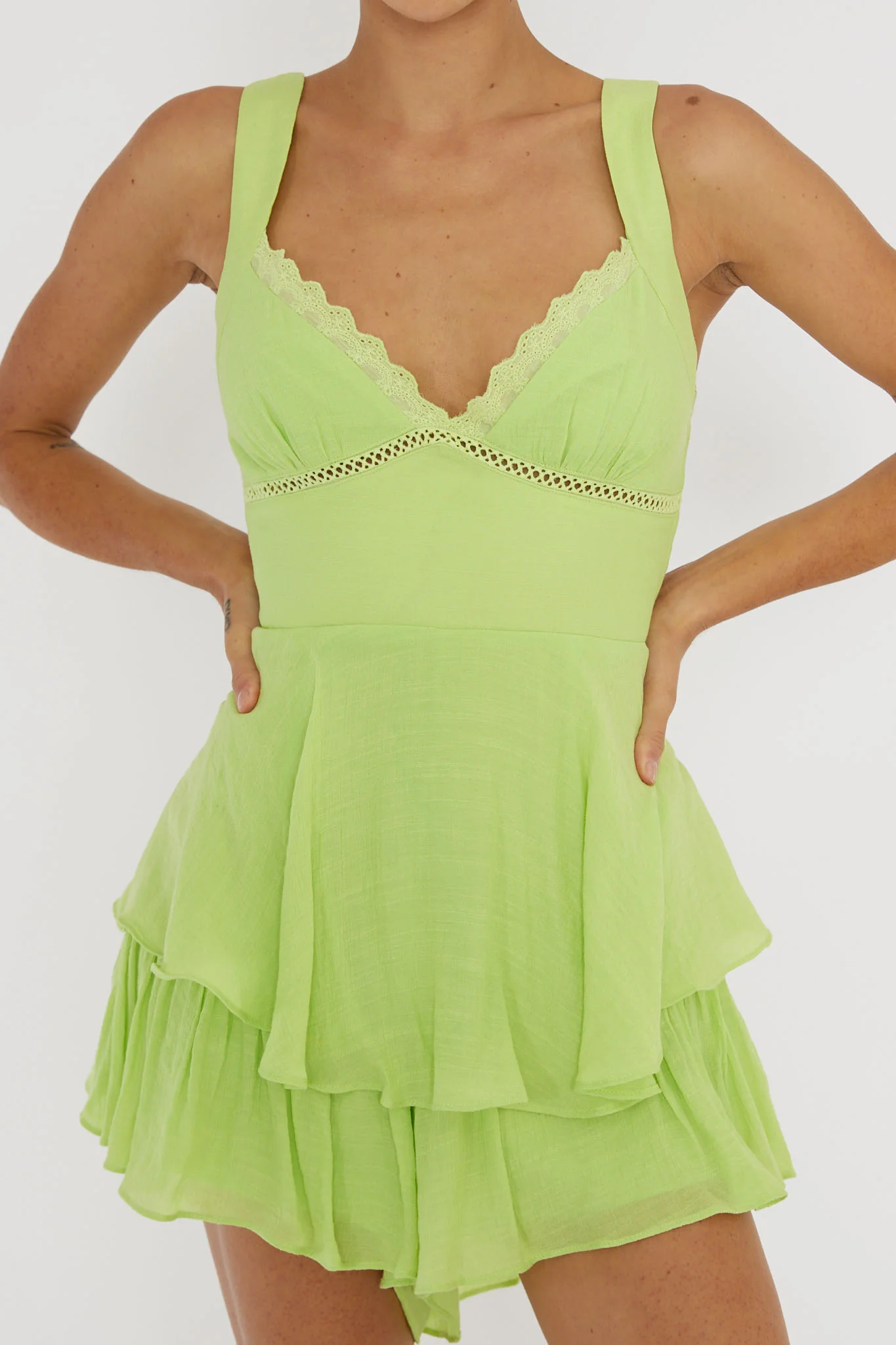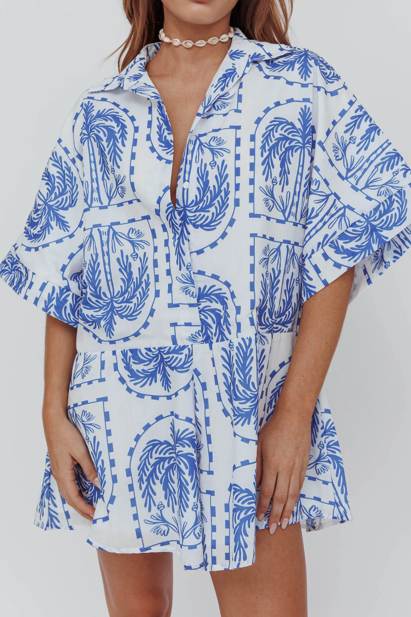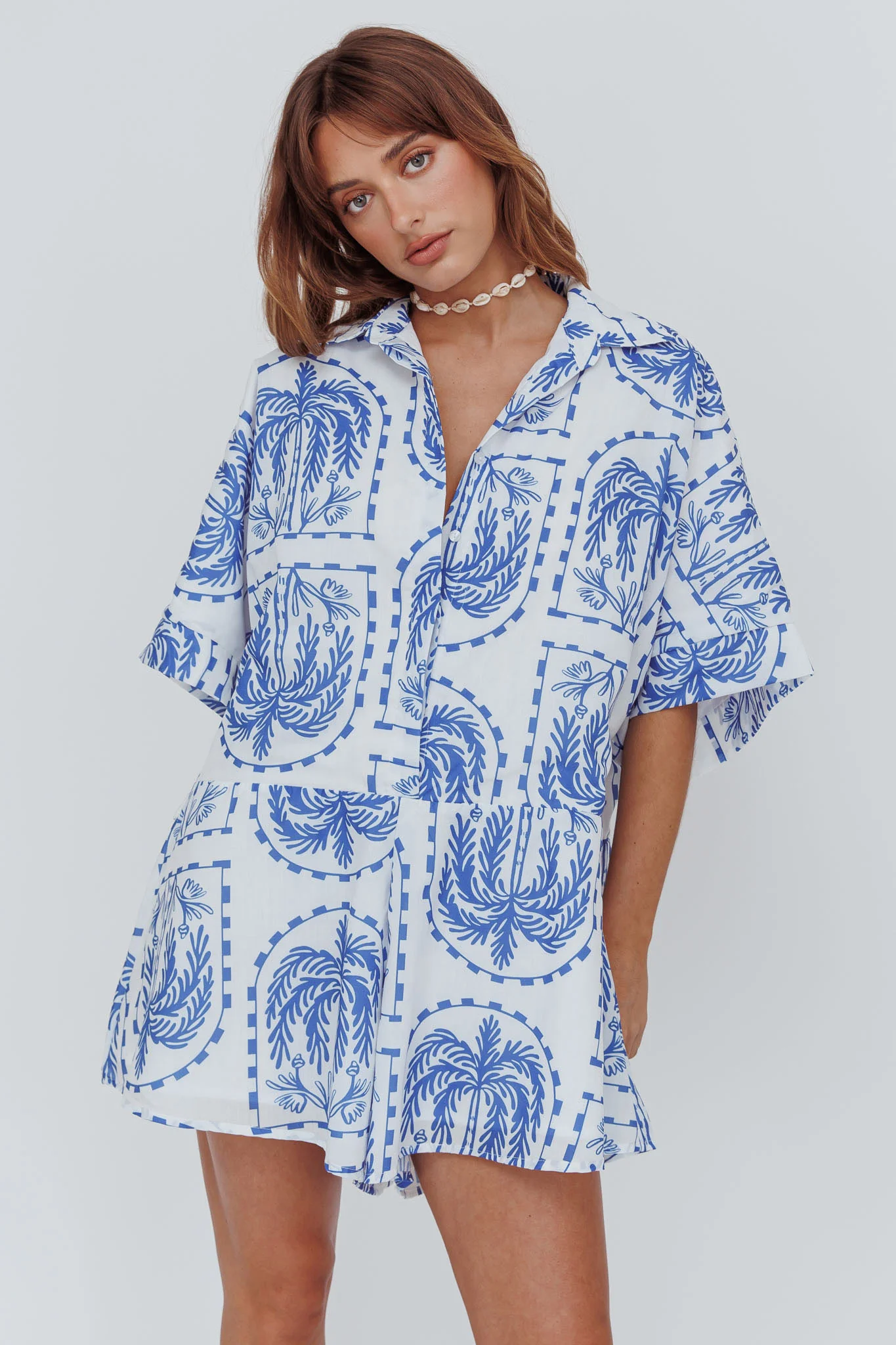 Paris Muse Gathered Bust Embroidered Romper Blue
