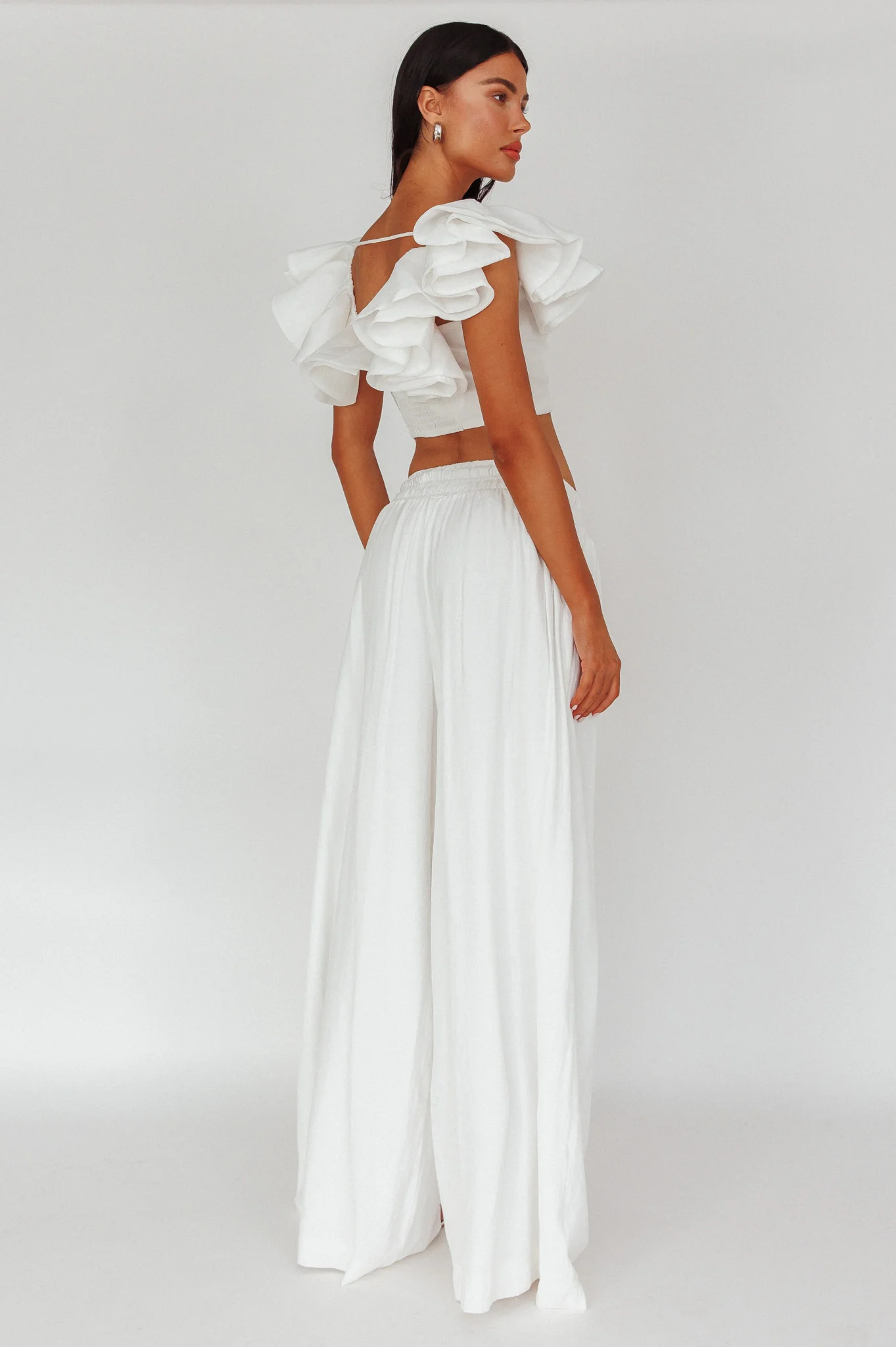Darna Shirred Waist Wide Leg Pants Off White