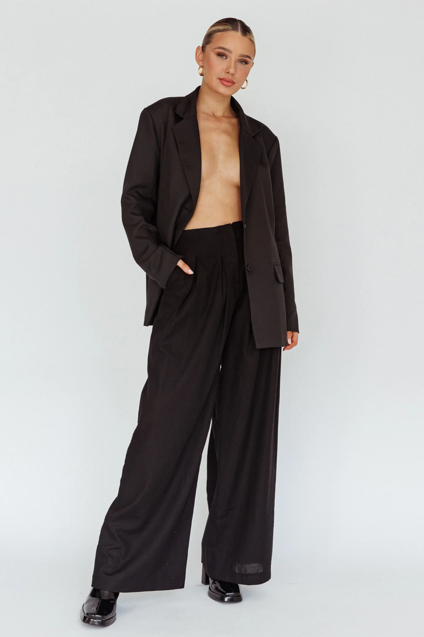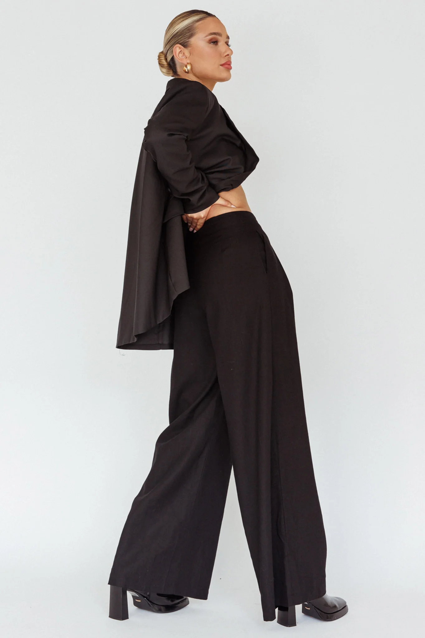 Backstage Pleated Wide Leg Pants Black