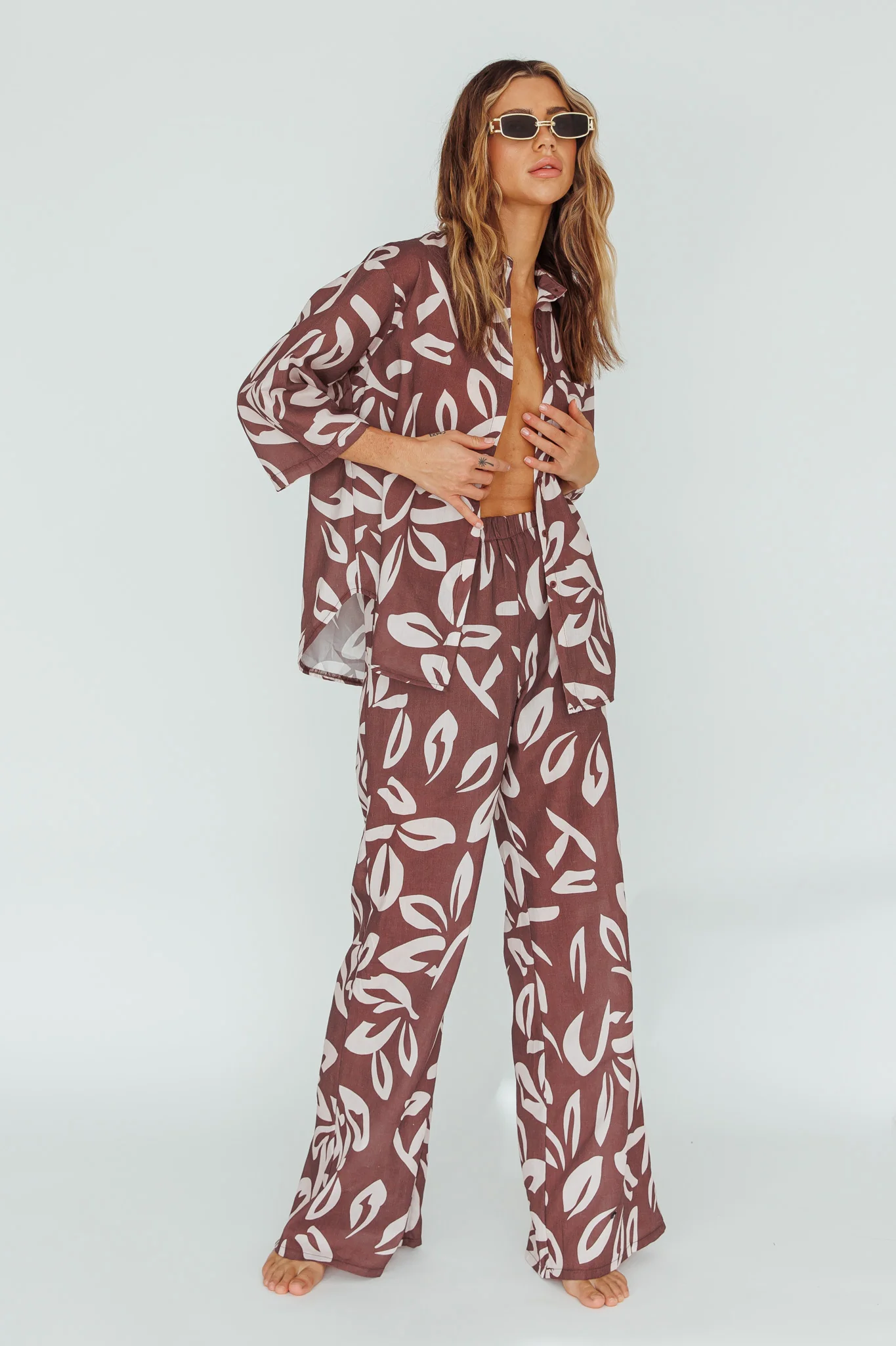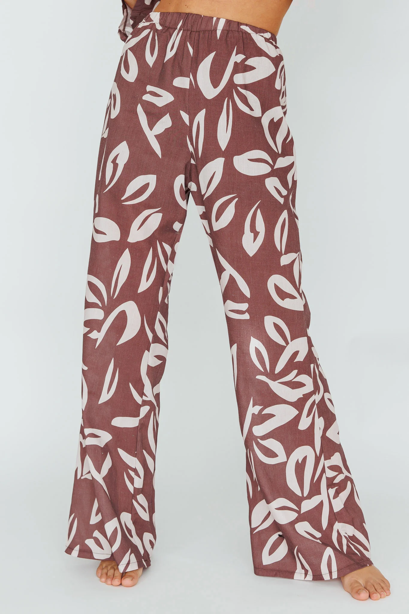 Just A Hunch Pants Leaf Print Chocolate