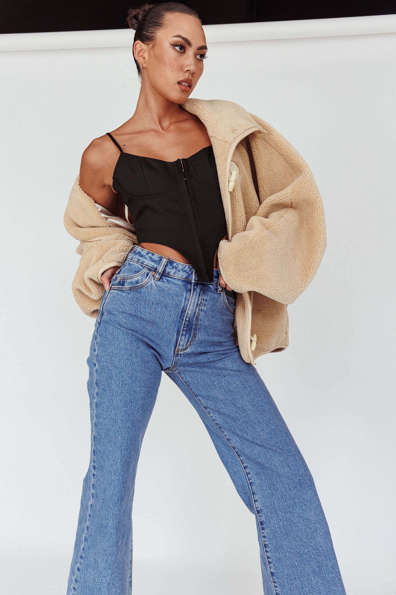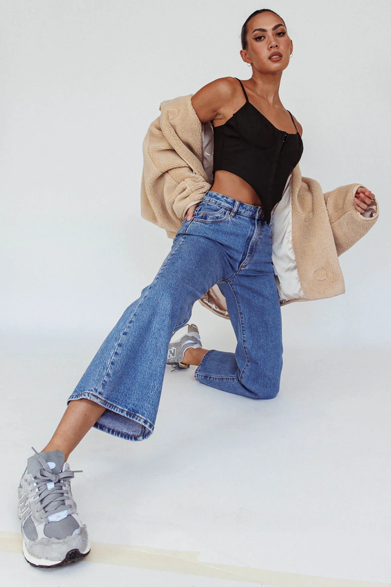 Sabria Mid-Rise Flare Pants Beige