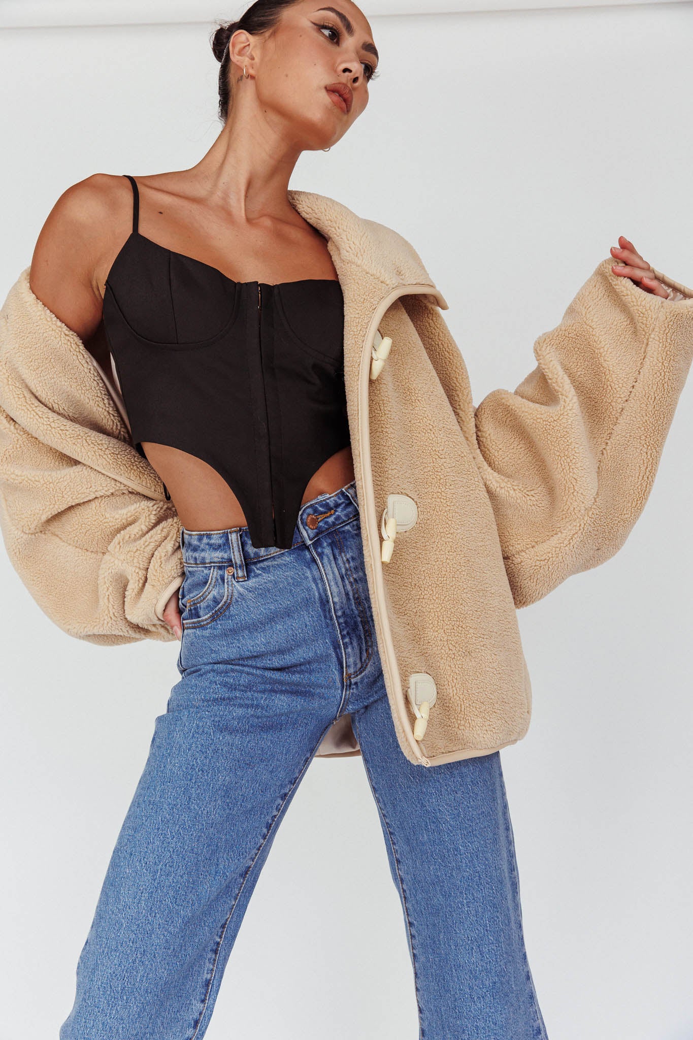 Lyris Button Detail Wide Leg Pants Natural