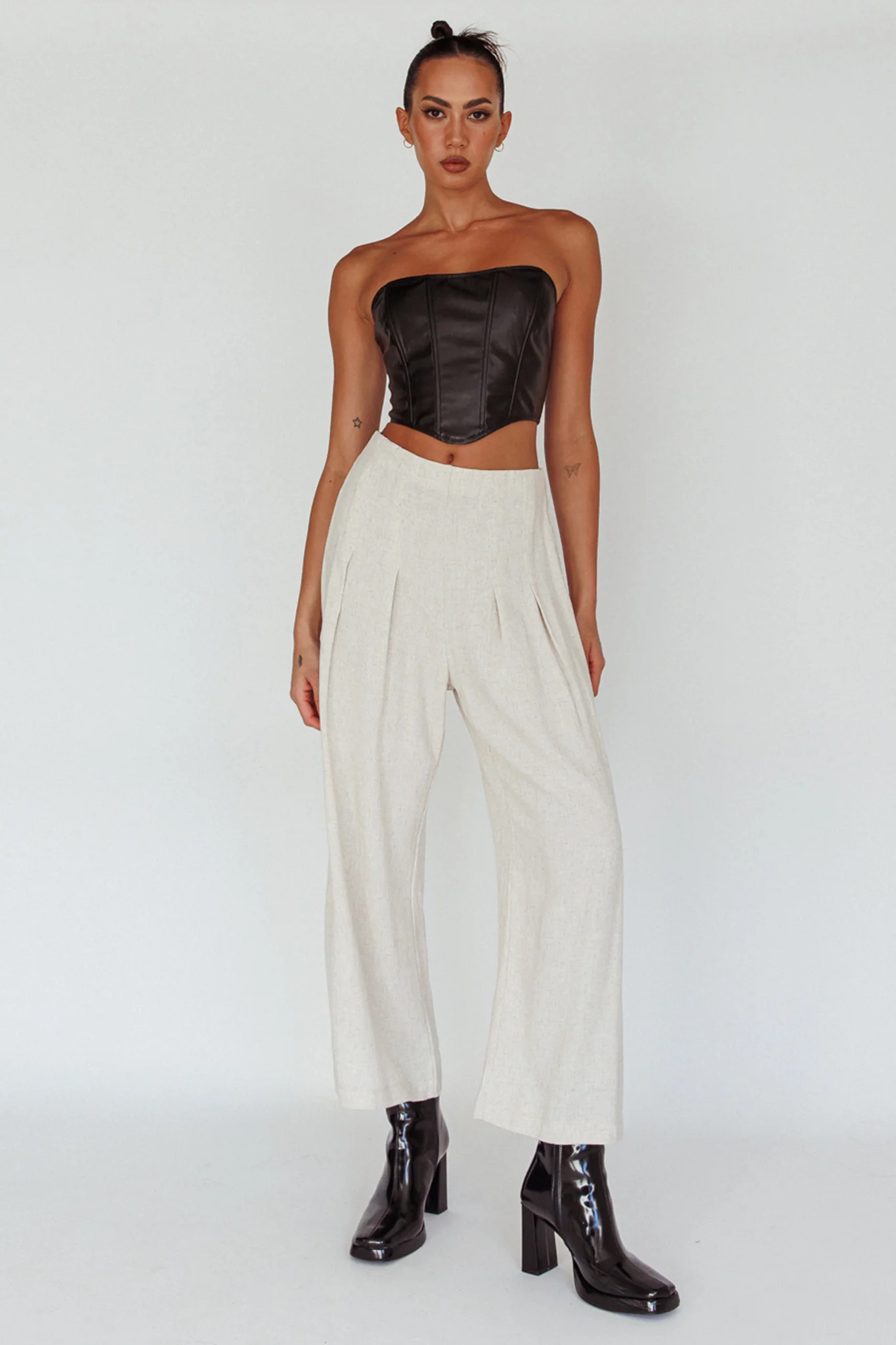 Backstage Pleated Wide Leg Pants Oat
