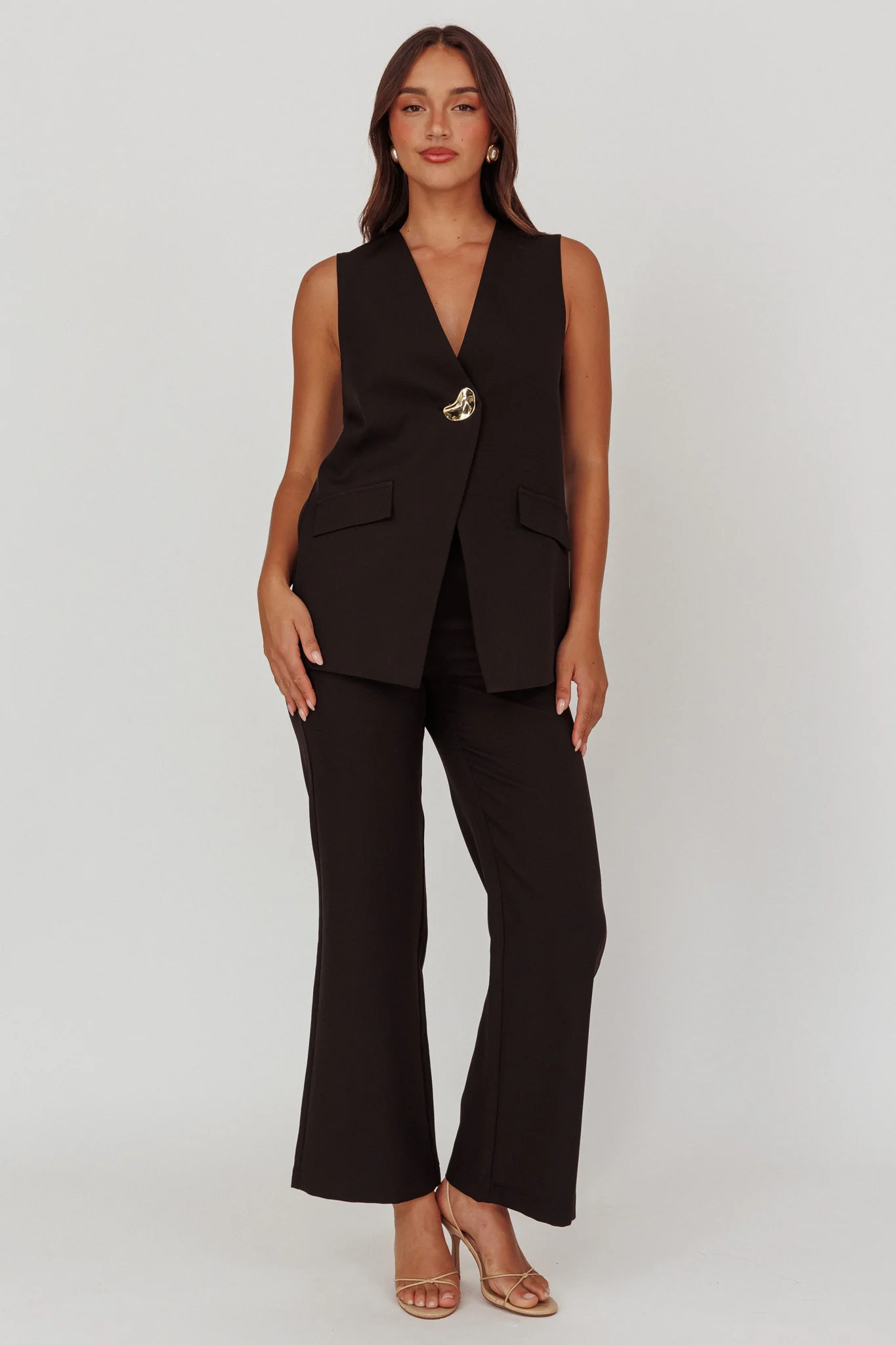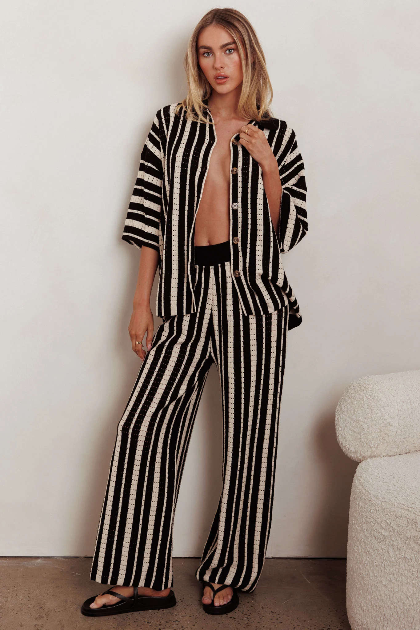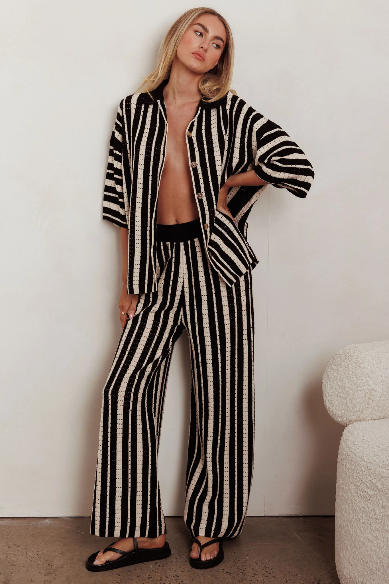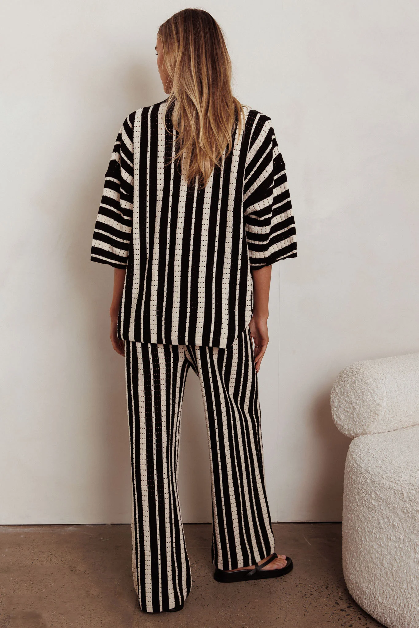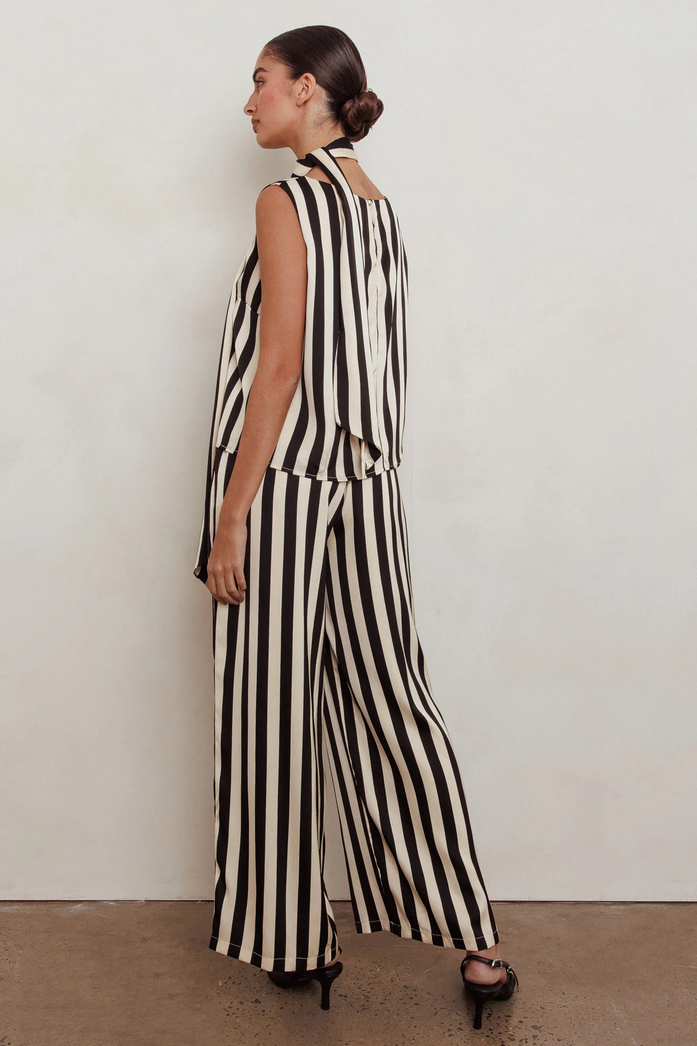 Alex Elastic Waist Striped Print Pant Black/Cream