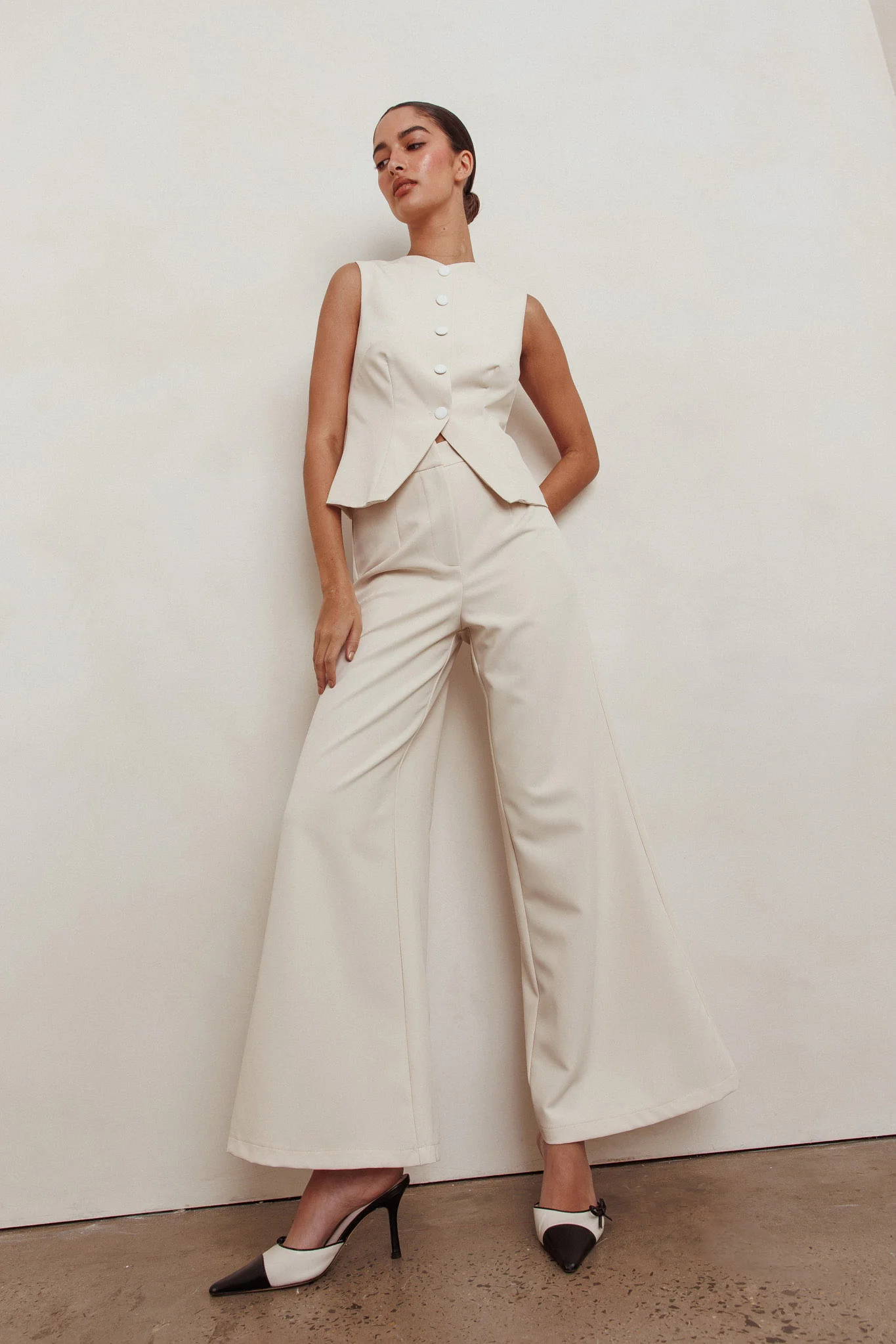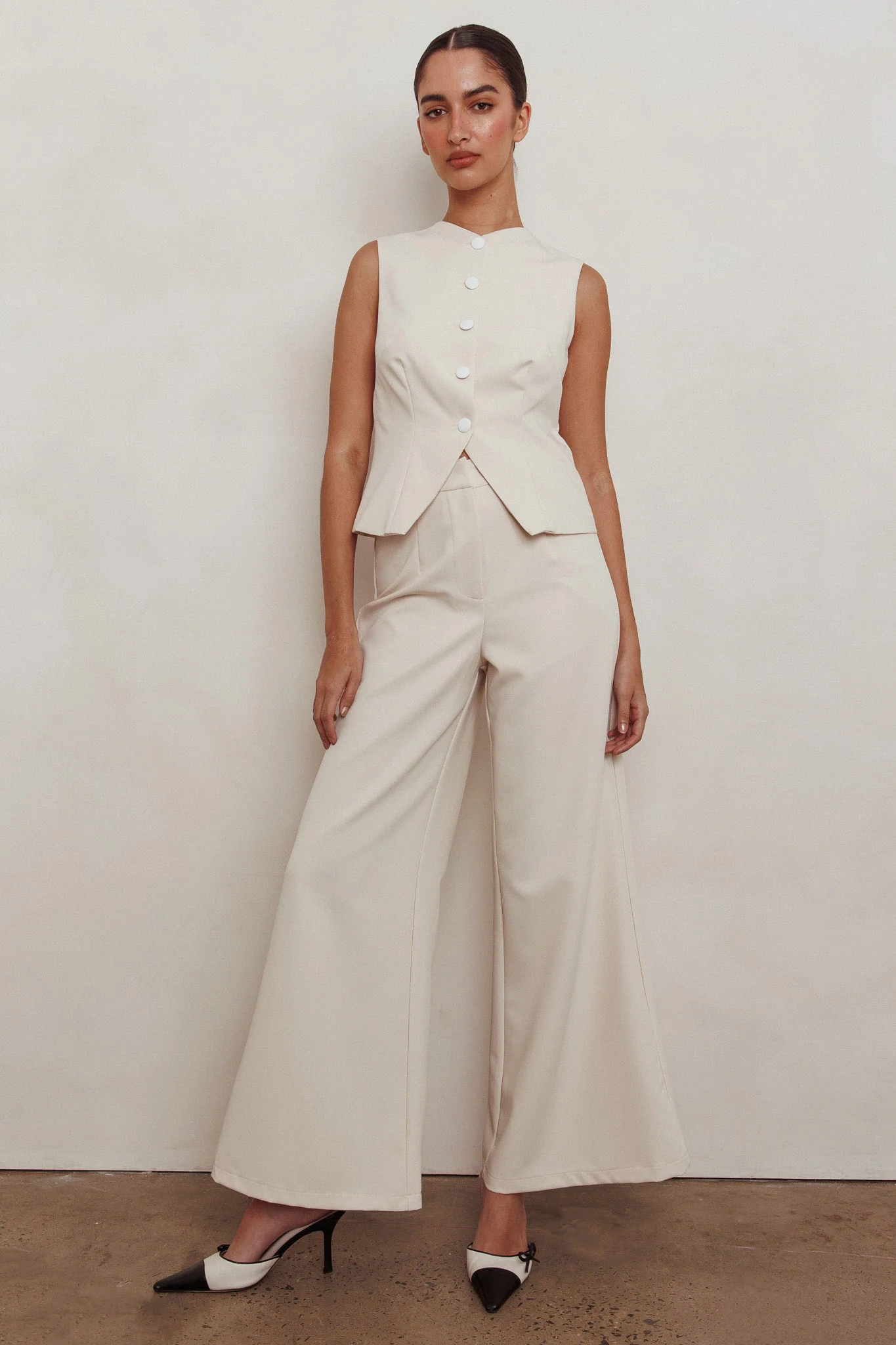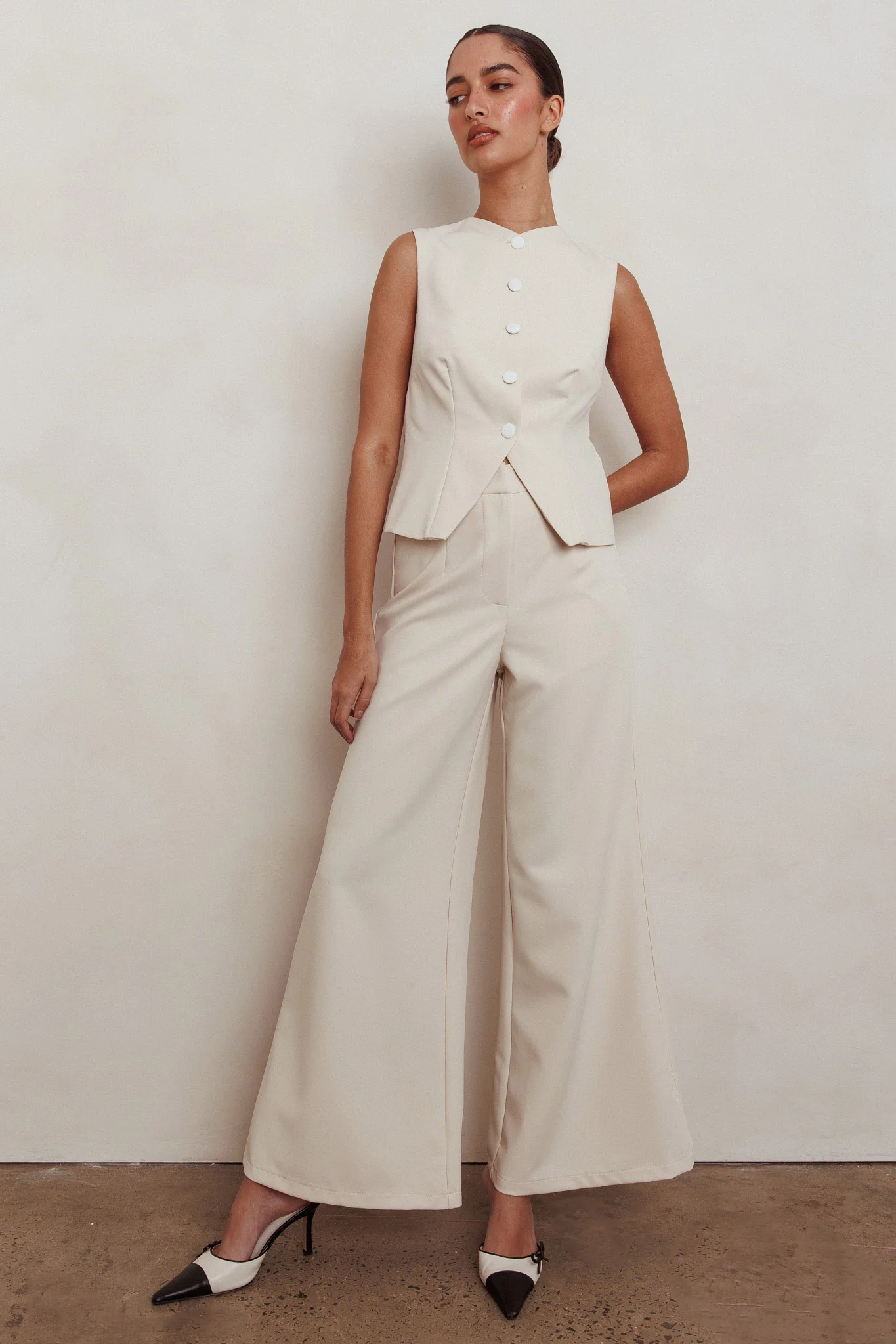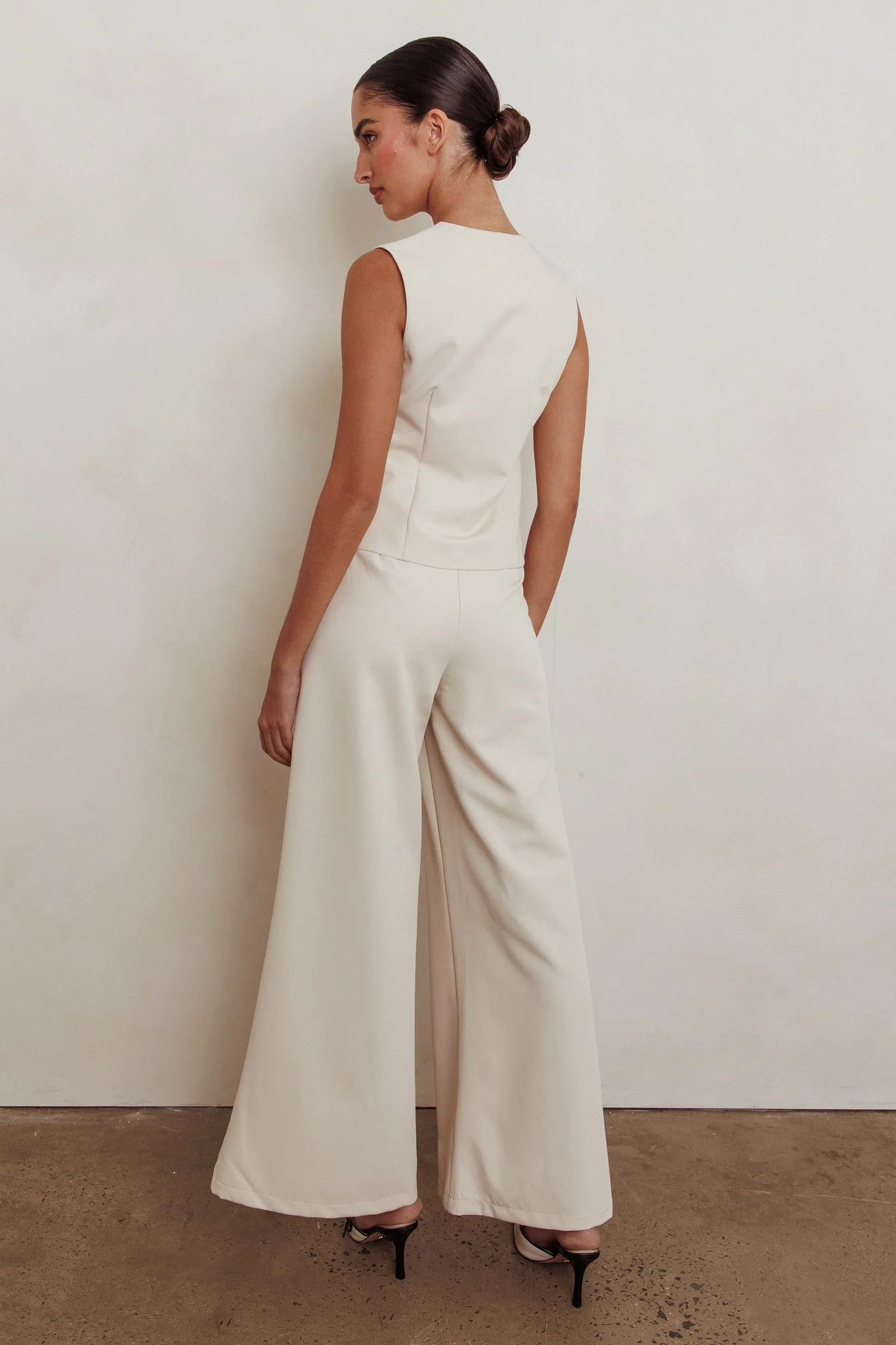 Liloh Contrast Ribbed Wide Leg Pant Beige